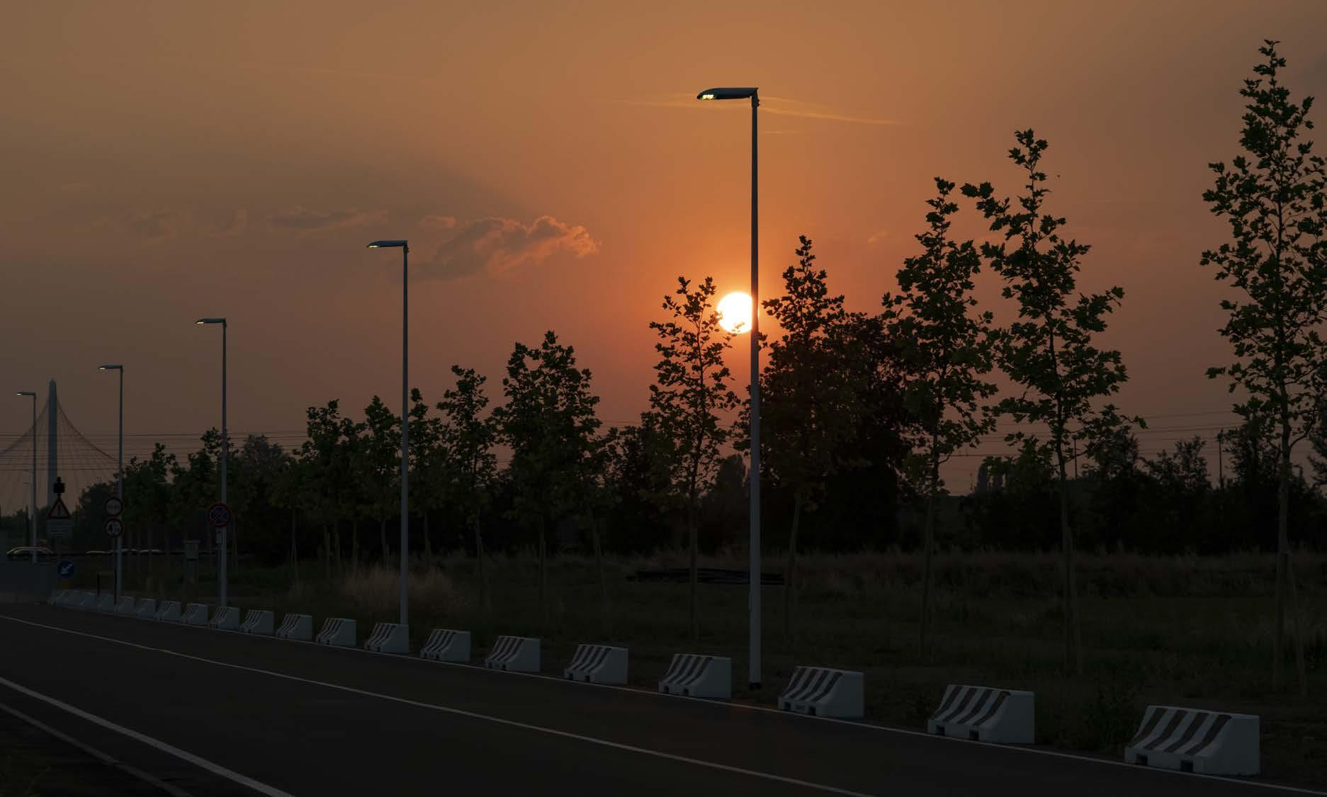 Per garantire la conformità con i regolamenti delle proprietà confinanti, non era consentita alcuna luce diffusa e i pali non potevano superare i 10 metri di altezza.