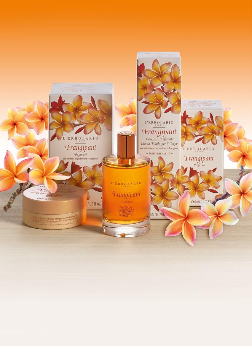 Più che una linea profumata, uno stato d’animo. Quello di un abbraccio pieno di gioia, di emozioni calde e rasserenanti. Proviene dall’assolata regione della Sicilia la pianta di Frangipani che i nostri laboratori hanno utilizzato per ottenere due preziosi estratti e un’acqua distillata dall’a zione idratante, tonificante e rinfrescante. Nascono così un