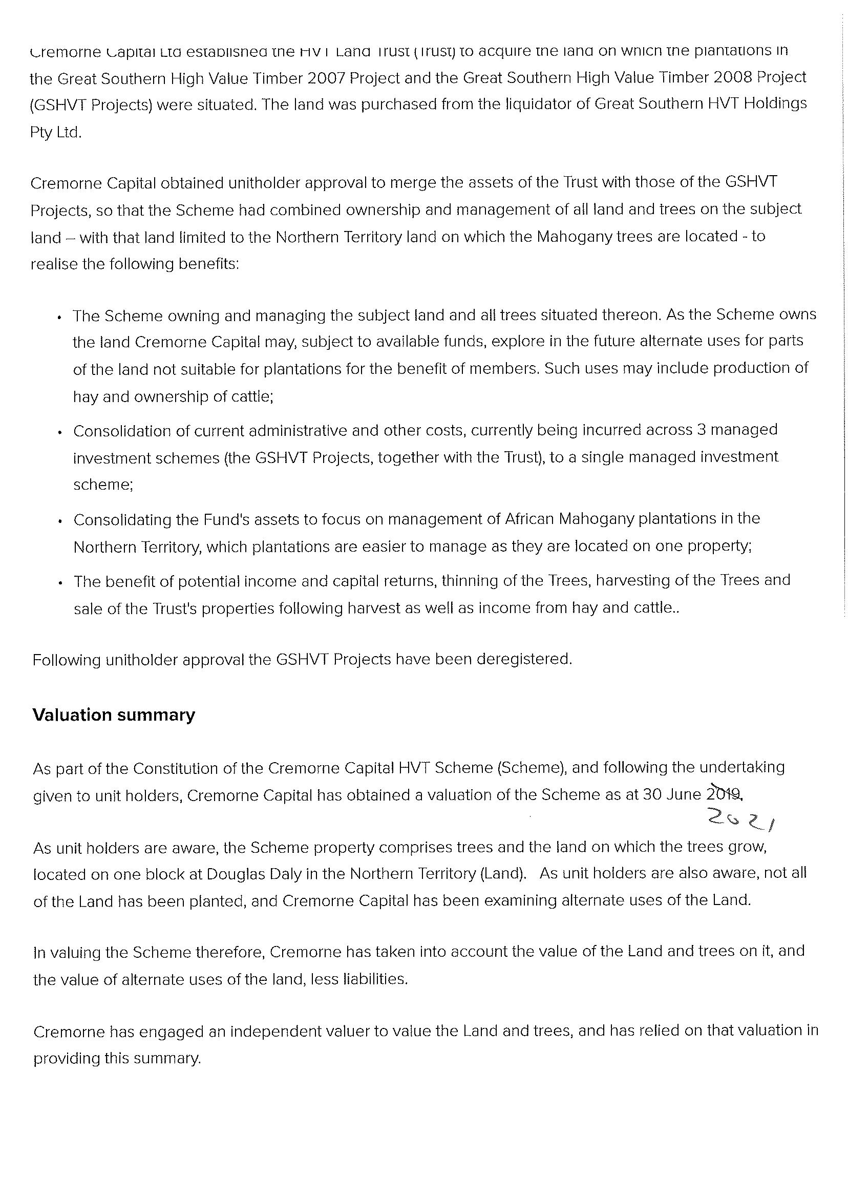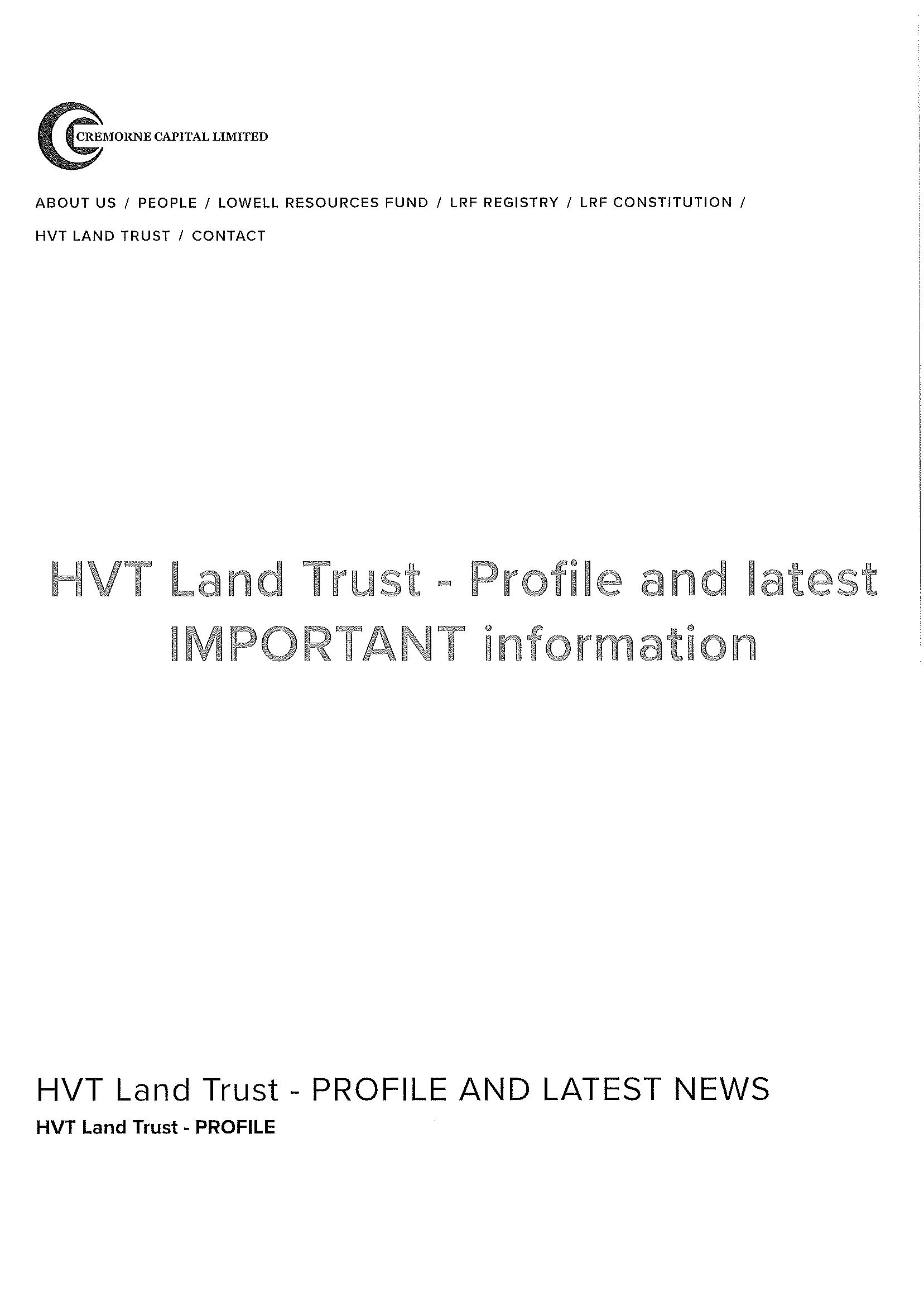 HVT Land Trust Profile and Latest IMPORTANT Information by Cremorne Capital - Issuu