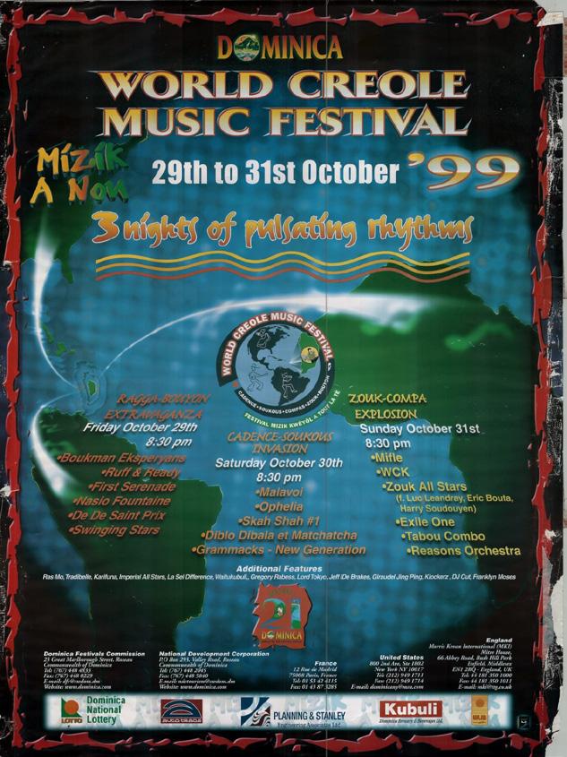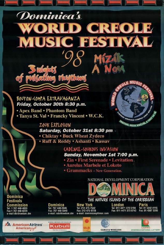 From the beginning, you positioned the festival as an international Creole event, not just a local concert. We wanted Dominica to be the center of the Creole-speaking world. That’s why we worked closely with RFO (French Overseas Broadcasting) and WLIB New York to broadcast the festival globally, to Mauritius, Seychelles, Guadeloupe, Martinique, and beyond. It was revolutionary for a small island like ours. The first lineup reflected that international Creole spirit, Magnum Band from Haiti, Taxi Créole from Martinique, Zouk Machine from Guadeloupe, Tabou Combo, Ophelia, WCK, First Serenade, and Midnight Groovers. And yes, Gordon Henderson on that first poster was intentional. He represented Cadence-Lypso, our cultural heartbeat.
