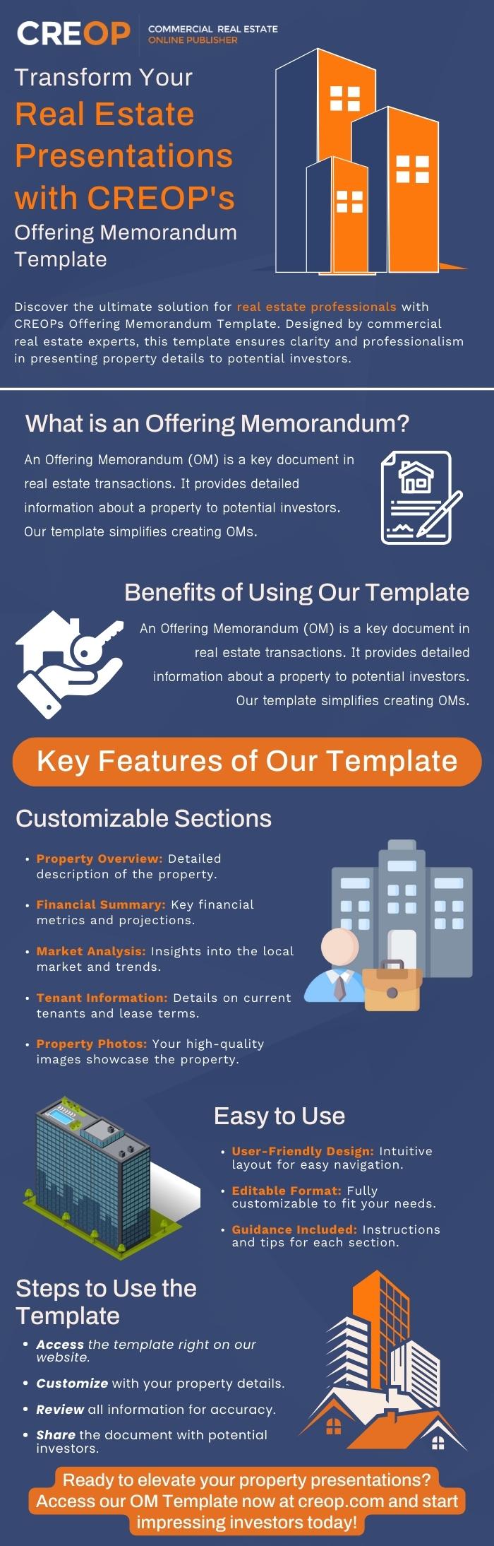https://creop.com/ - Elevate your real estate presentations with CREOP's state-of-the-art Offering Memorandum Template. Designed for industry professionals, this template streamlines the creation of compelling, data-rich documents that showcase your property listings with clarity and sophistication. Featuring customizable layouts, modern design elements, and integrated data analytics, CREOP ensures your presentations stand out. Enhance client engagement with visually stunning and highly informative offering memorandums that highlight key investment opportunities. Simplify your workflow, save time, and impress potential investors with a professional-grade presentation tool. Discover the future of real estate marketing with CREOP’s innovative solutions.
