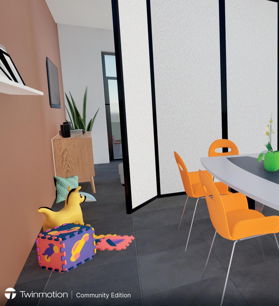 Pour l’aménagement intérieur, l’extension serait construite comme une seule et même grande pièce mais serait pourvue d’une grande cloison acoustique amovible permettant de scinder l’espace en deux zones bien distinctes quand cela s’avère nécessaire ( atelier, salon, salle de visite, espace snoezelen, etc ).