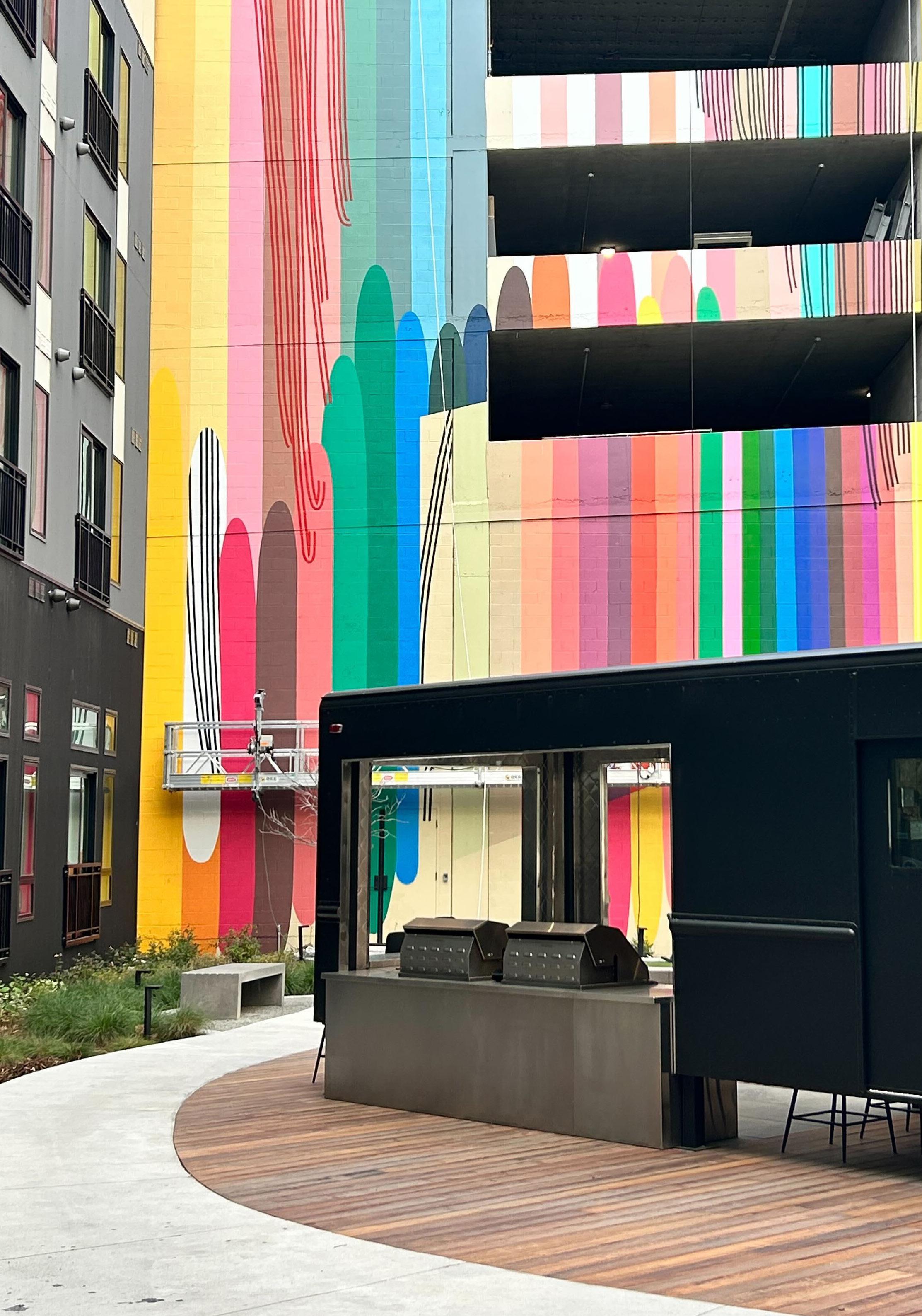 The 2022 Stewardship Report featured CHD:WCK! as the artist on its cover. This partnership grew, with CHD:WCK! selected to create a mural for NOVEL RiNo (pictured). He is a non-traditionally trained (self-taught) visual artist, whose aesthetic tastes were shaped in and around East Orange, New Jersey. The Crescent Communities team saw this as an opportunity to support and strengthen the relationship with a current artist, while introducing art from Charlotte-based CHD:WCK! to the Denver community.