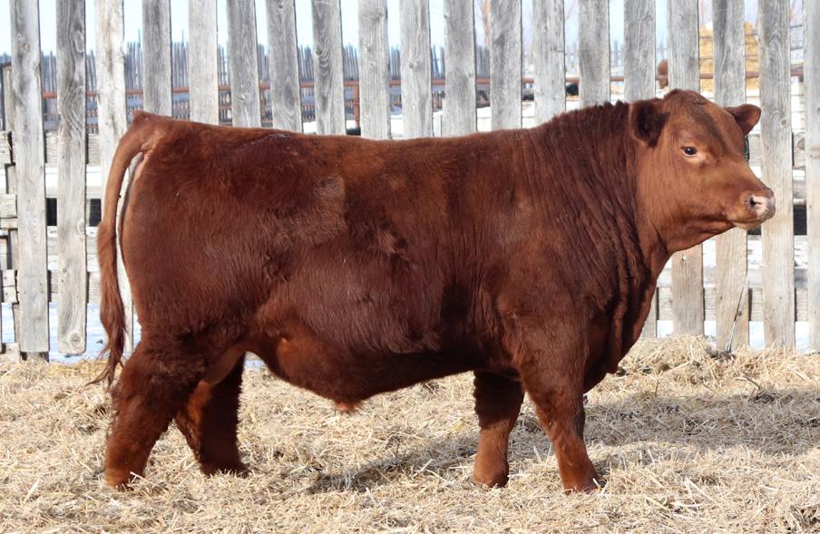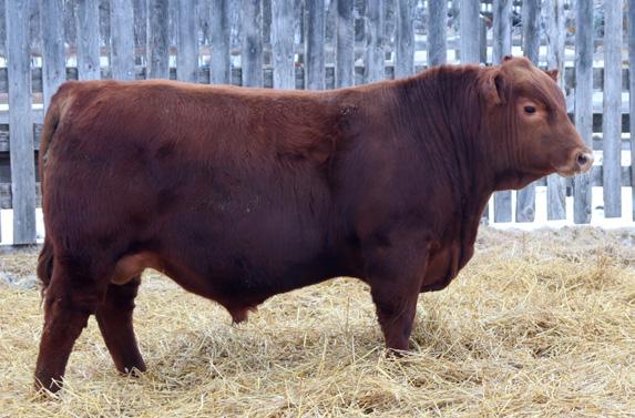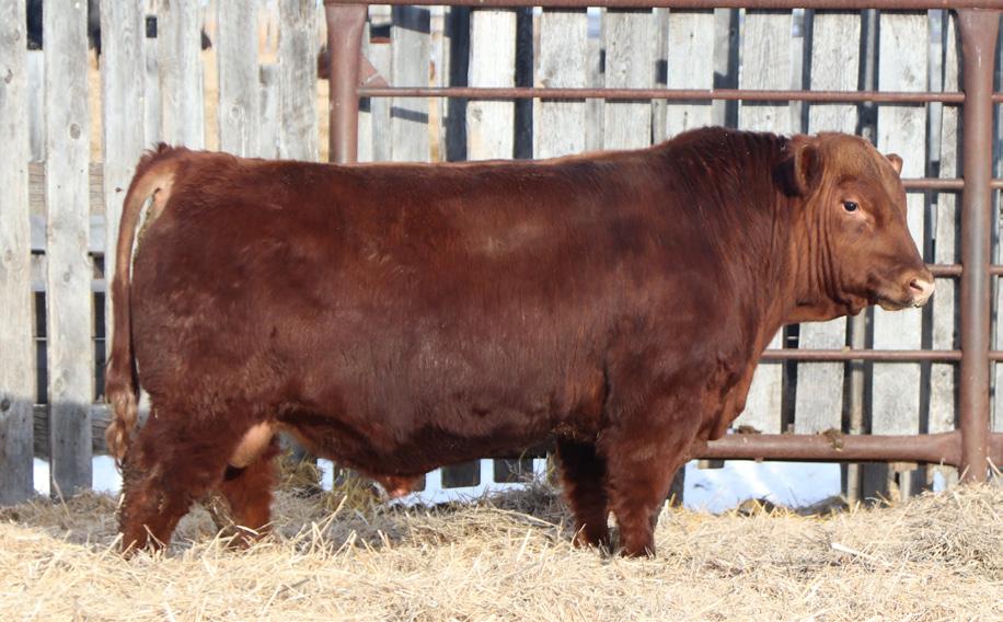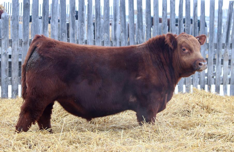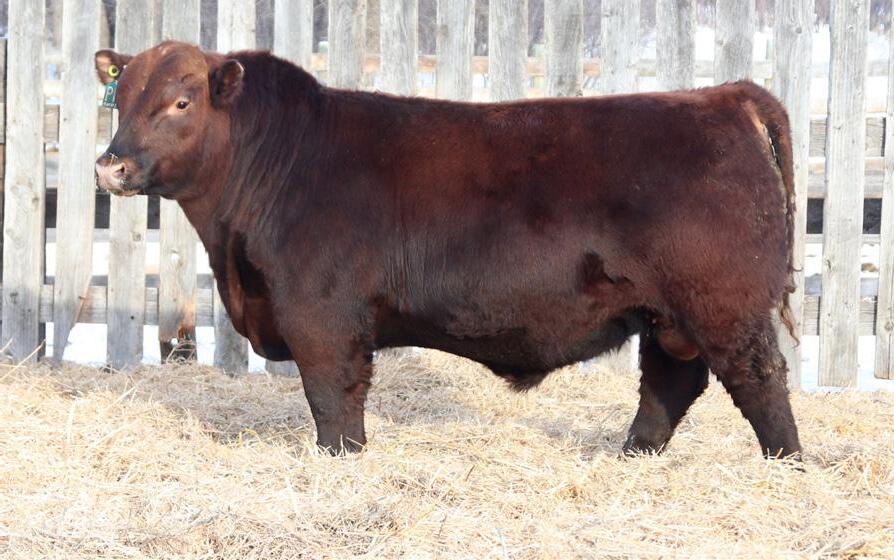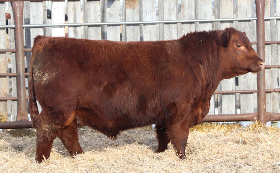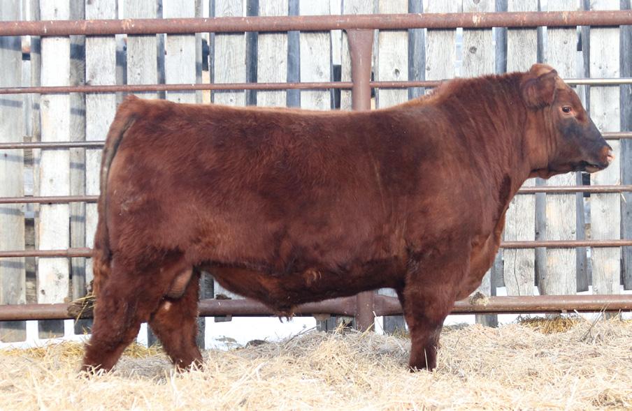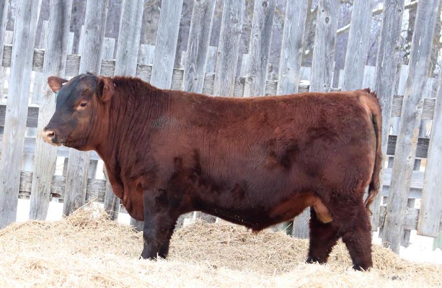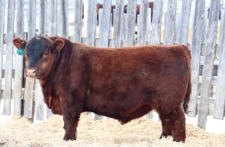 -Joel Delaurier, Delaurier Cattle Co.Lot 8 is a very unique Straight Canadian Red Angus Bull, he carries himself with a lot of presence and is very athletic. He is very broad based and has excellent feet. 1Z continues to produce fantastic calves at 12 years of age.