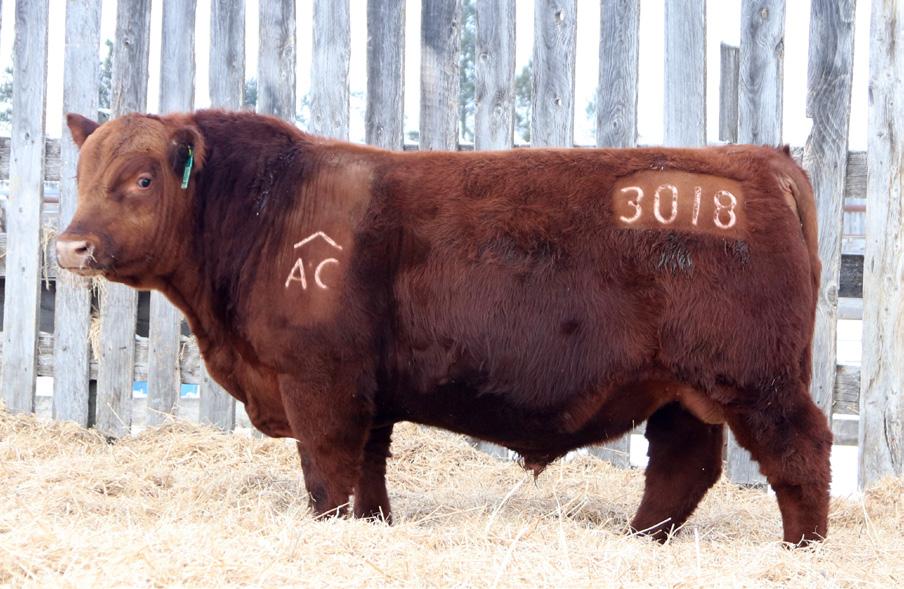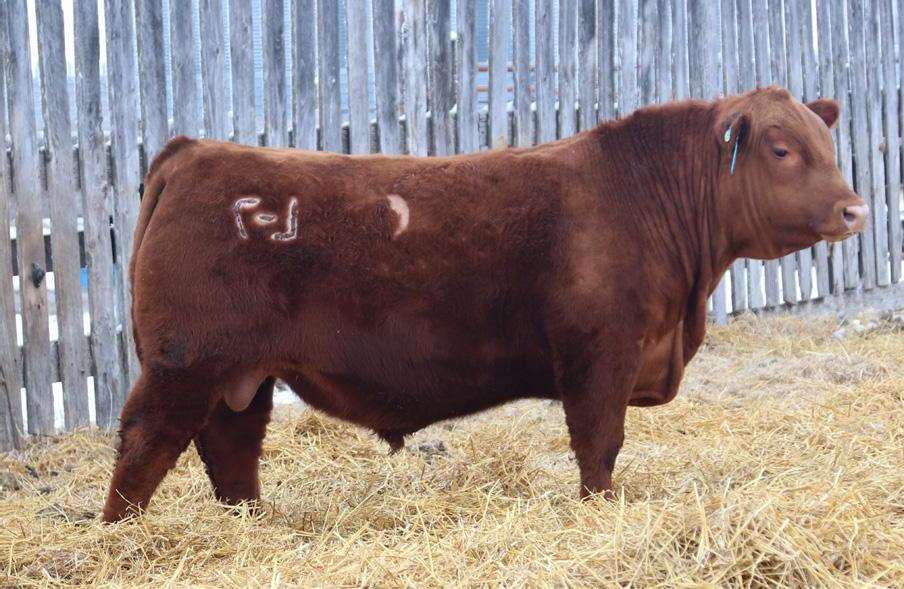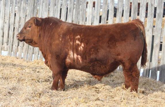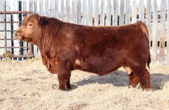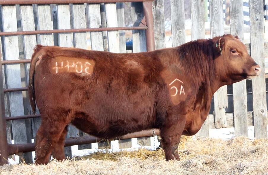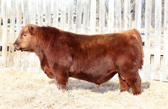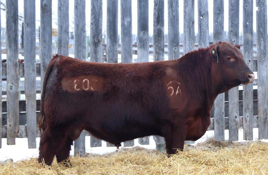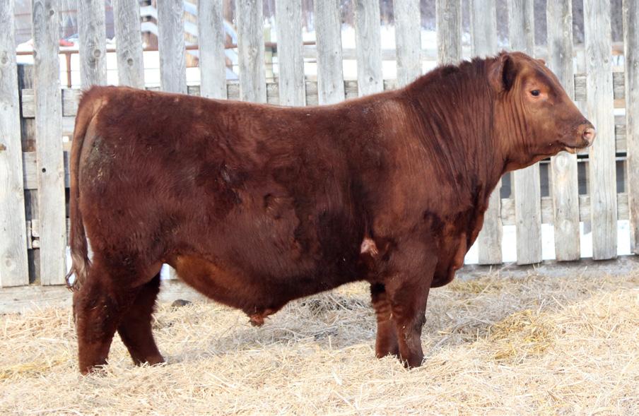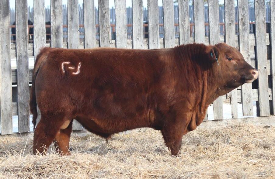 -Joel Delaurier, Delaurier Cattle Co.Lot 8 is a very unique Straight Canadian Red Angus Bull, he carries himself with a lot of presence and is very athletic. He is very broad based and has excellent feet. 1Z continues to produce fantastic calves at 12 years of age.