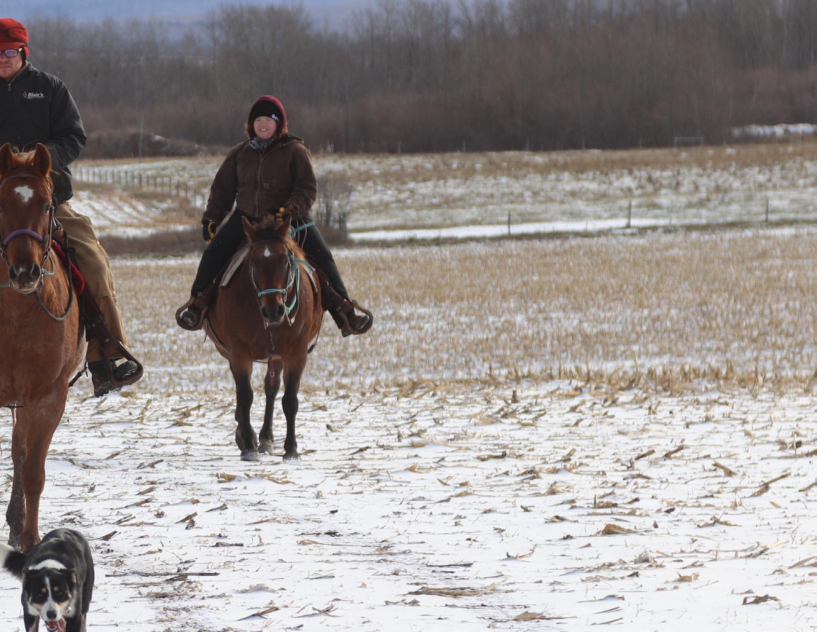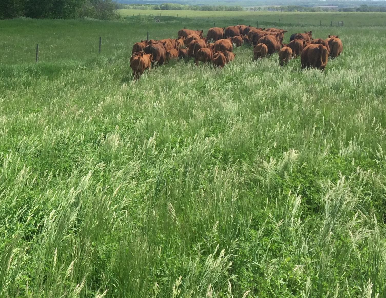 This year the bulls were fed a balanced TMR growing ration of hay silage, straw, corn silage, rolled barley, rolled faba beans, whole oats and a custom formulated mineral. The bulls are very athletic and have been wintered in large paddocks to ensure they get plenty of exercise. They will go straight to work and walk your pastures with ease. All of the cattle are familiar with both horses and dogs. We work with the bulls daily and we value the good dispositions in our breeding lines.