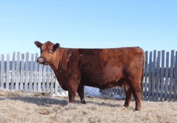 This beast is one of Austen’s favourite Red Bulls in the pen. He’s really powerfully constructed up front, strong topped and really complete structurally. 181G is a very nice young female that has already provided a daughter for the replacement heifer pen.