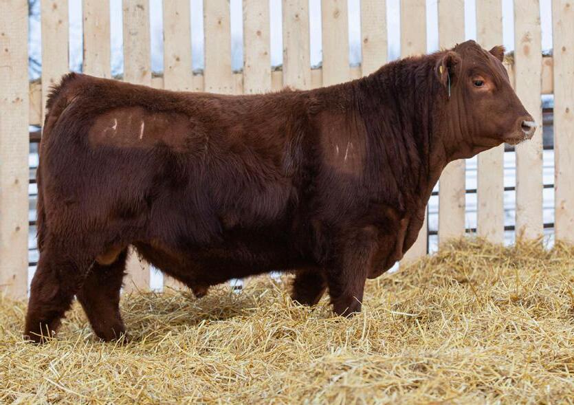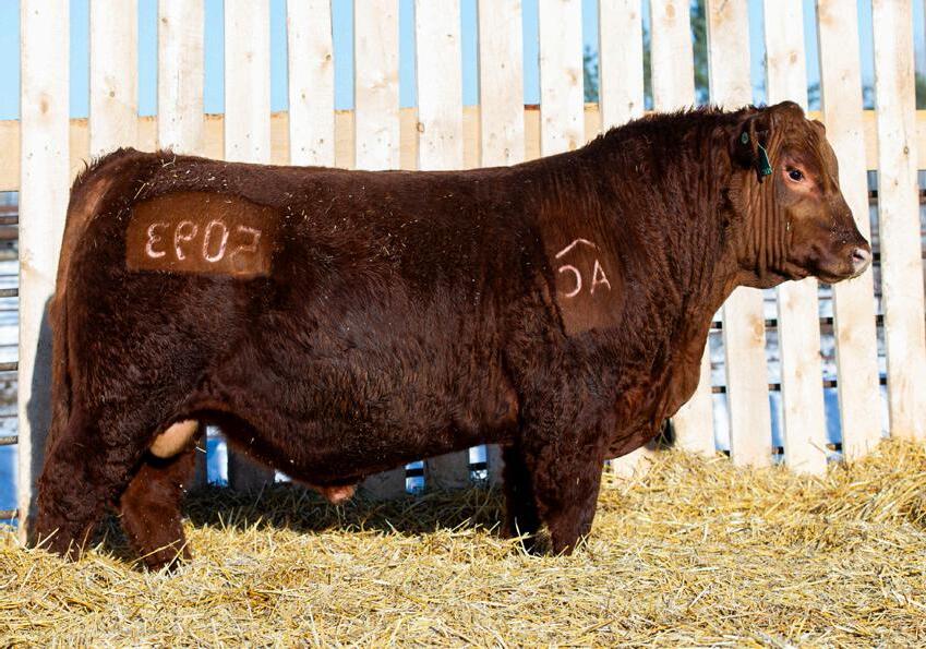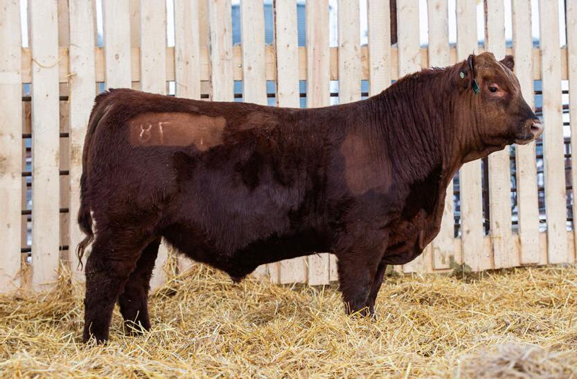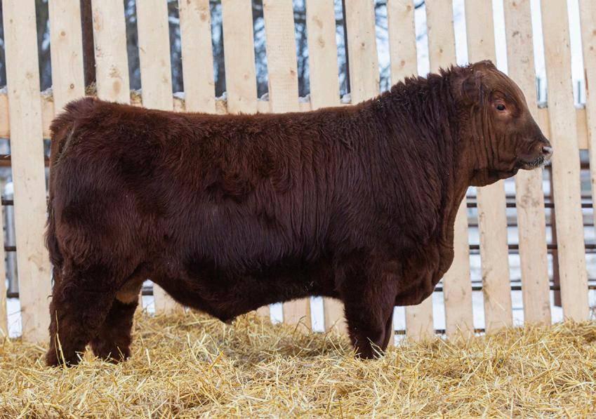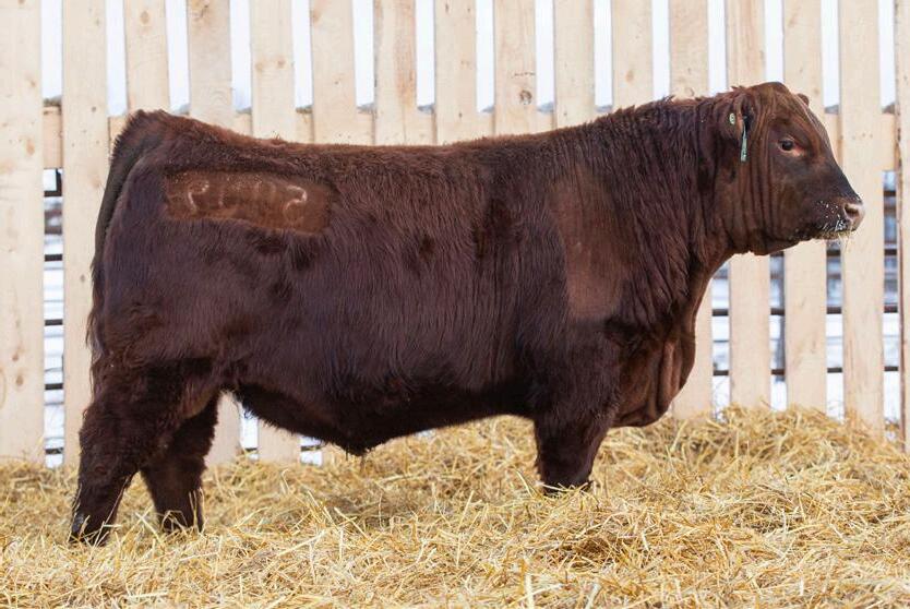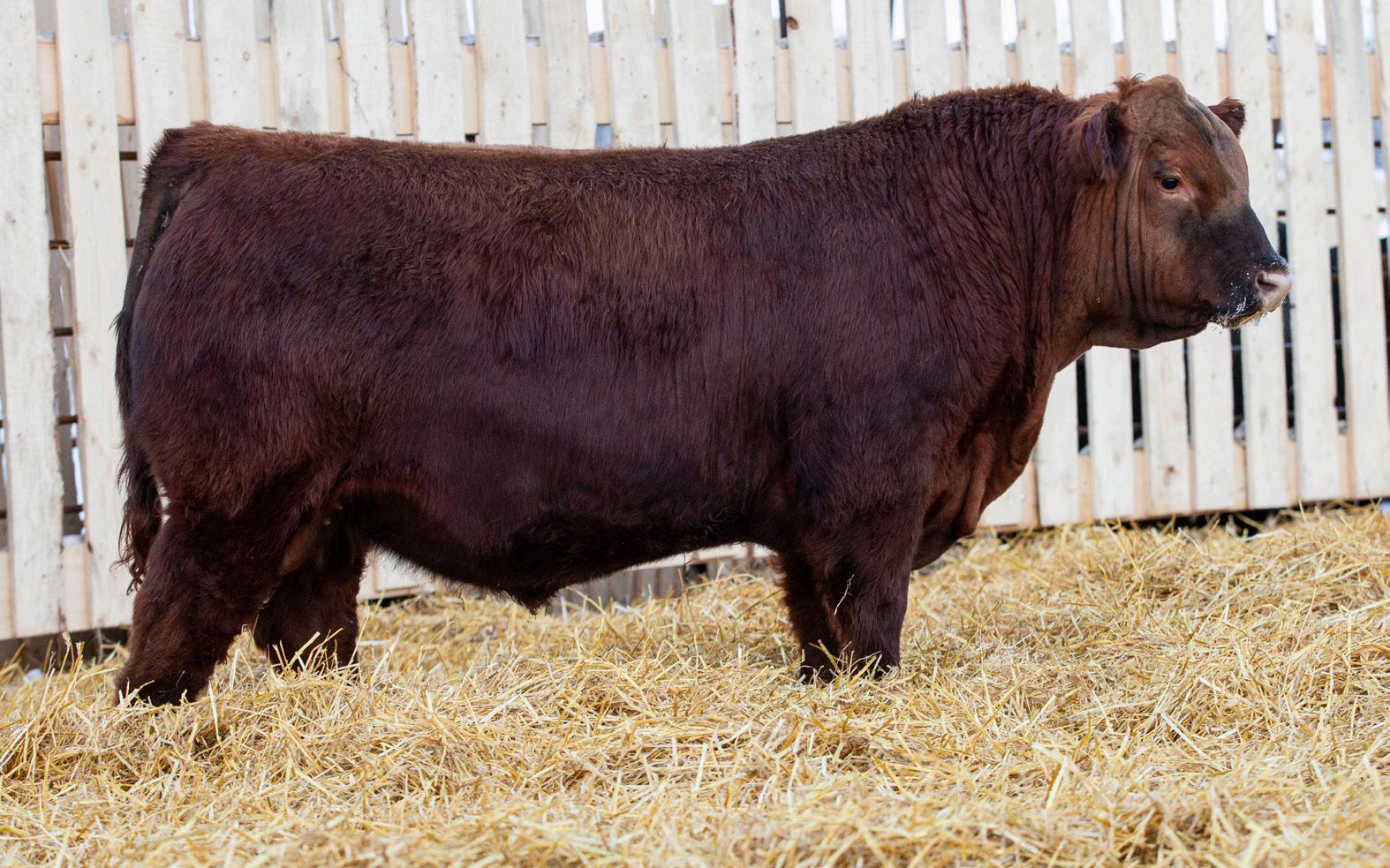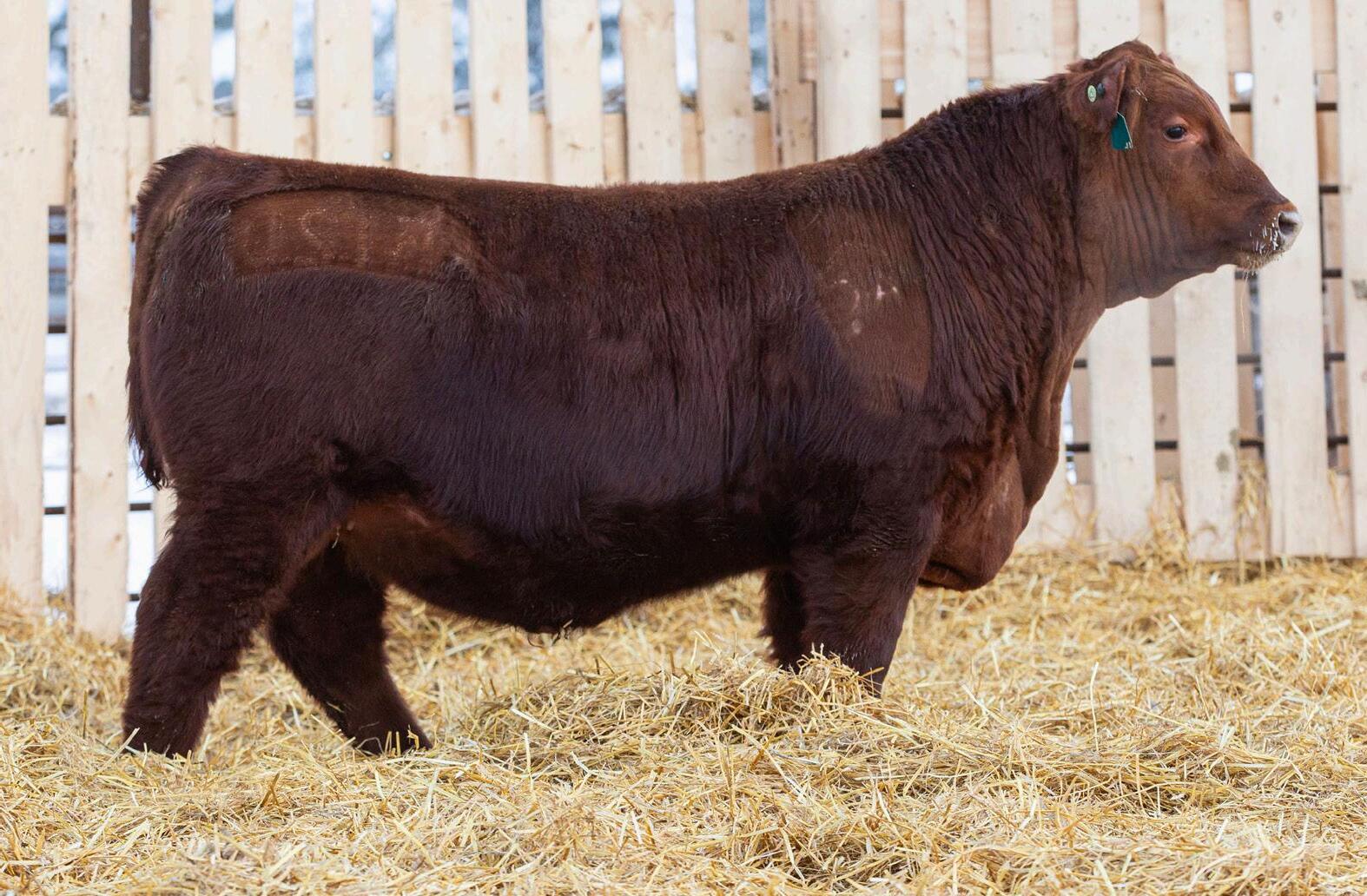 Lot 18 patterns very similar to his brother Washington. If you are looking to add performance make sure to give him special consideration. His dam is a direct daughter out of 13B and Big Shot 118E. She is dark red is one of our larger framed young cows.