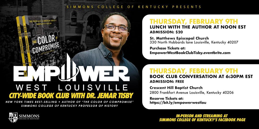 Join us for the Empower West Book Club as Dr Jemar Tisby discusses his book, The Color of Compromise The event will take place Thursday, February 9 at 6:30 in the Sanctuary.