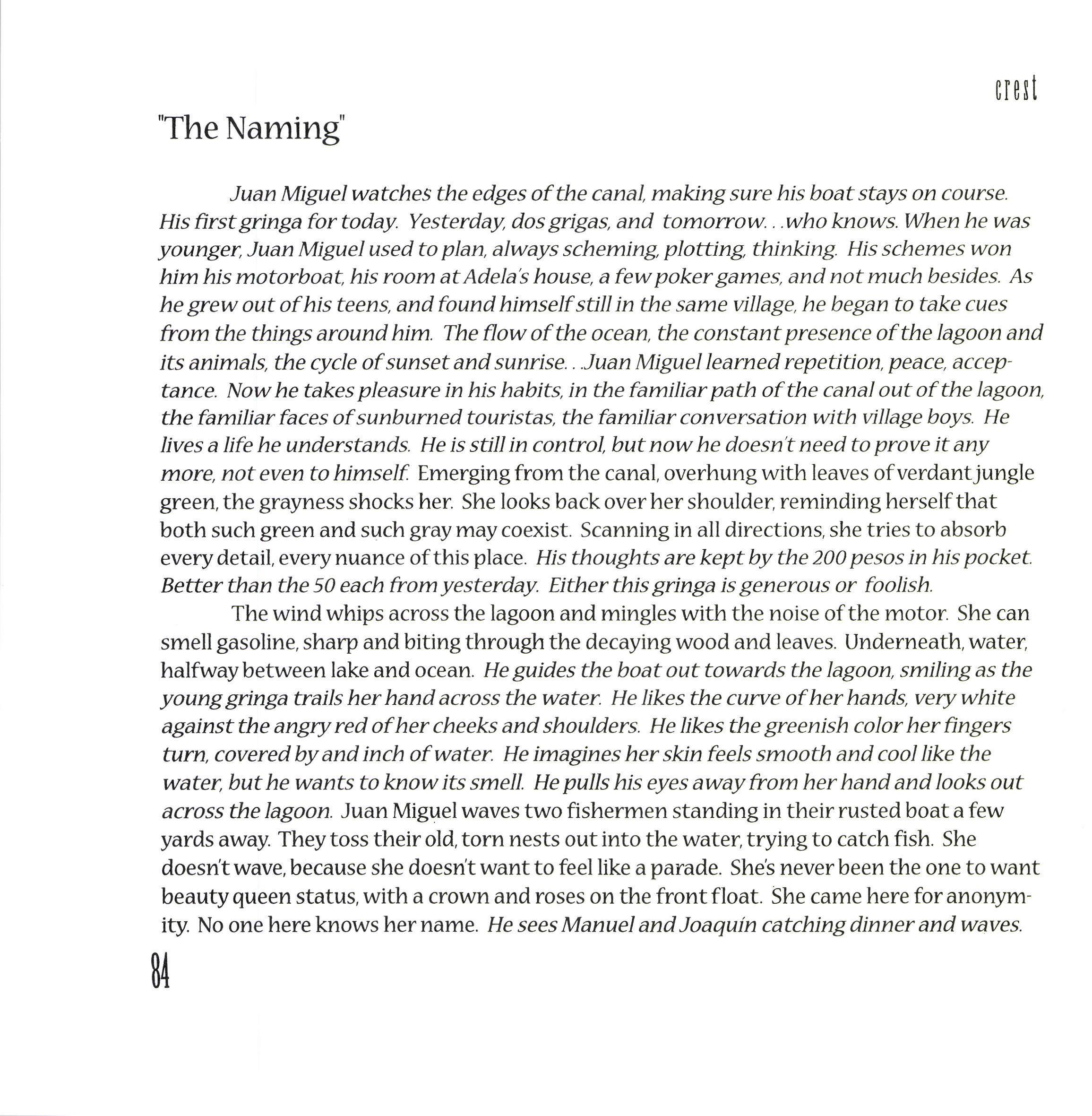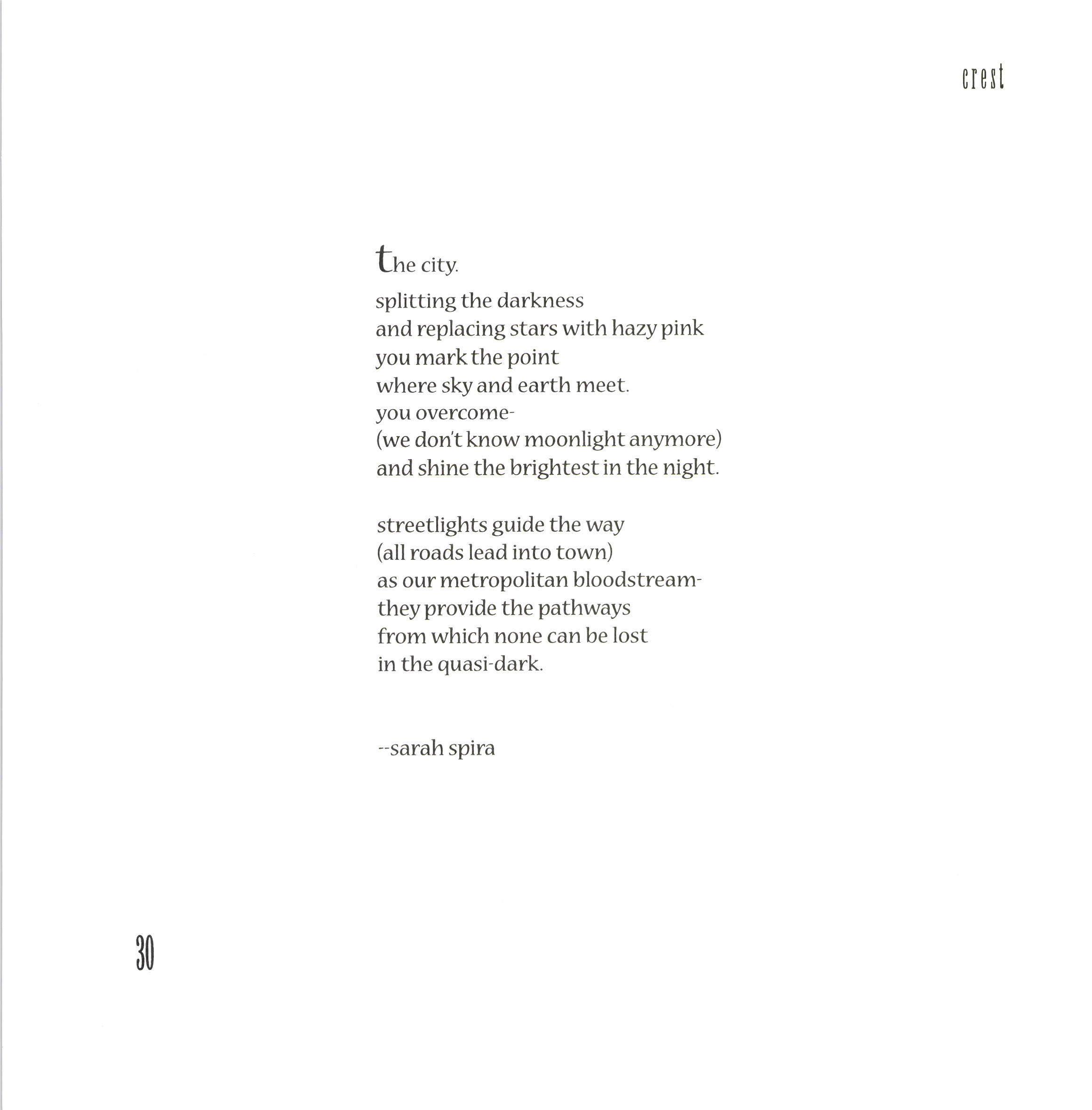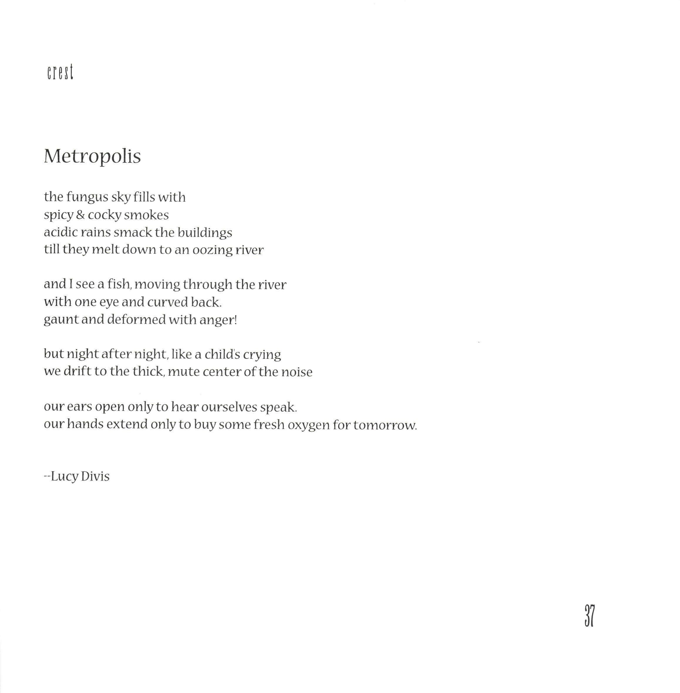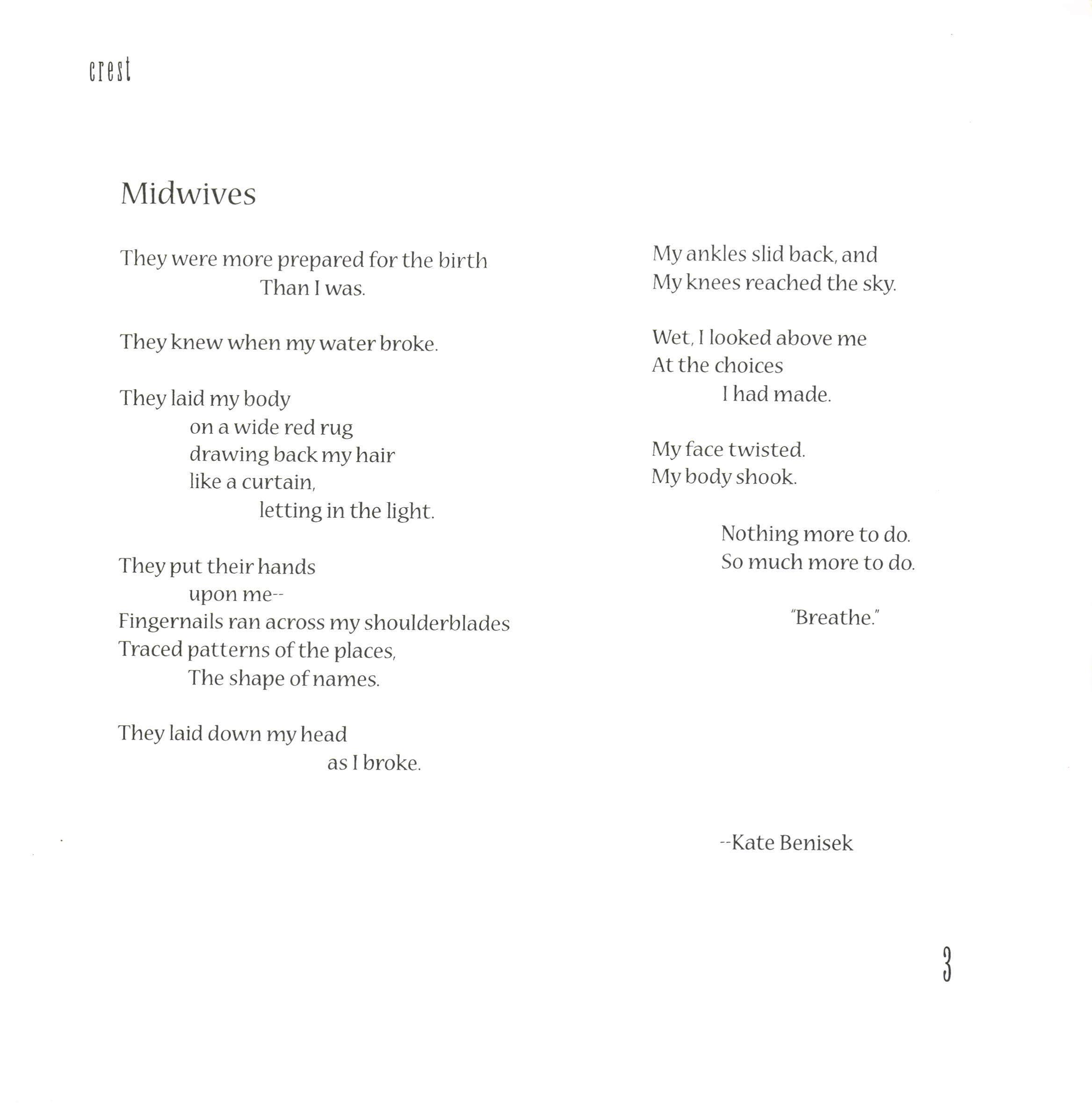They put their hands upon meFingernails ran across my shoulderblades Traced patterns ofthe places, The shape of names. Theylaid down myhead as I broke.