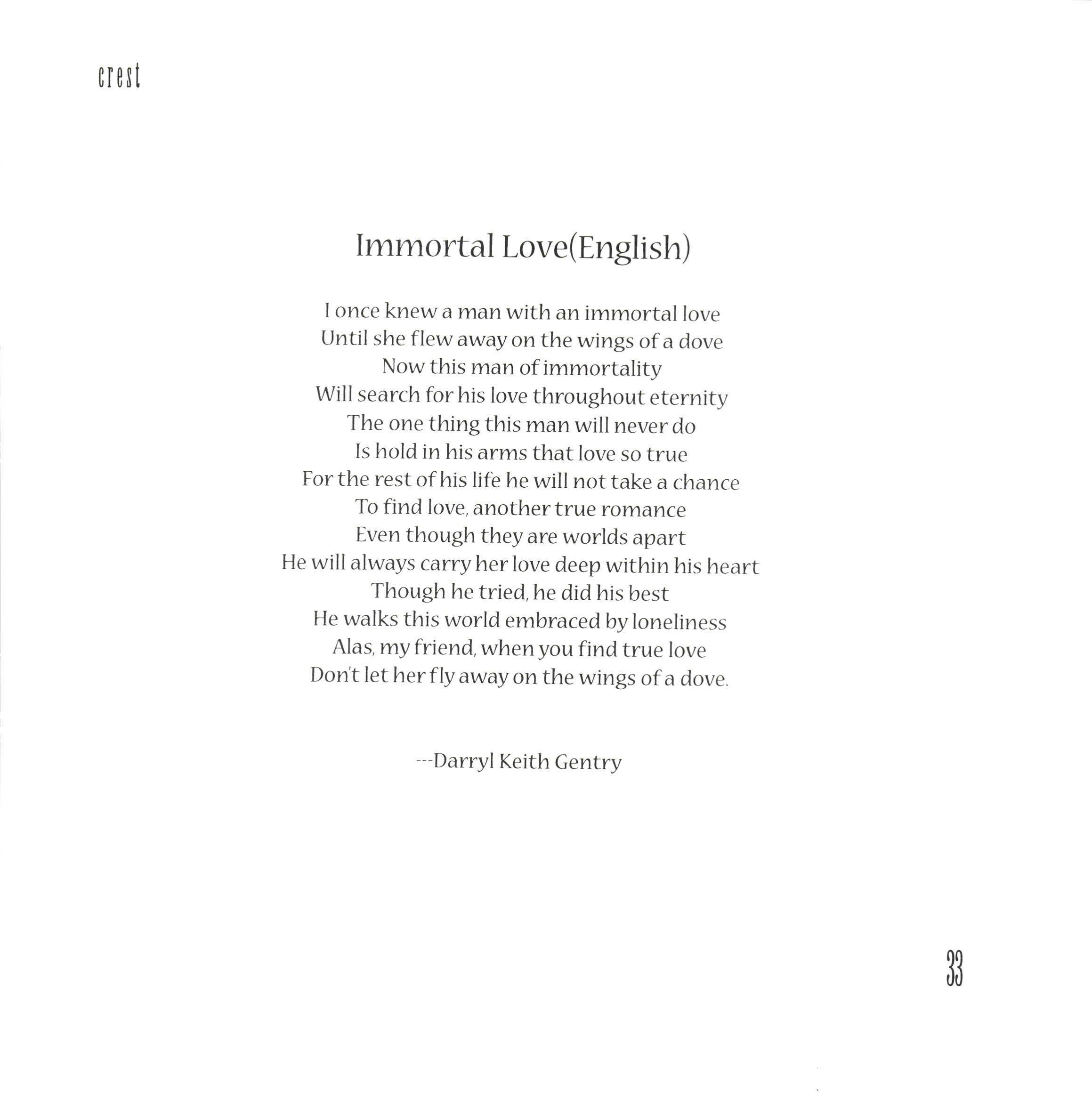 A stone cold silence encased me and fear froze my ability to hate your words Like ice they stabbed through my silence and like fire they burned me from the inside I remember the clock going backwards and hair flying everywhere I remember the very breath that held your words, making it hard for me to breathe And the smell of blood Somewhere. Everywhere. Nowhere. I was still incapable of moving, but it was there Time was trapped inside mymind I\4inutes. Seconds. Hours. You move You fly You touch me IMMOBILE