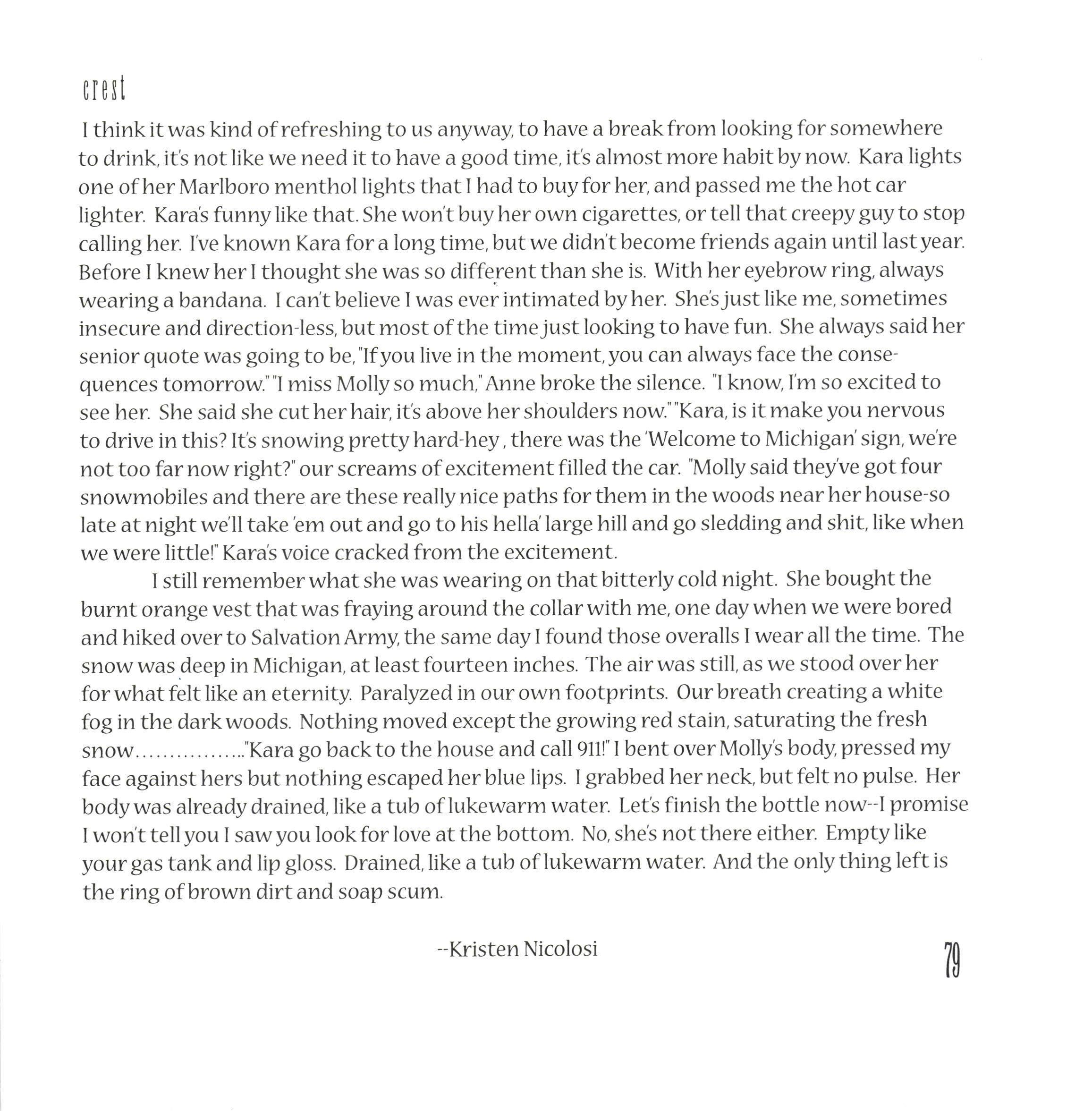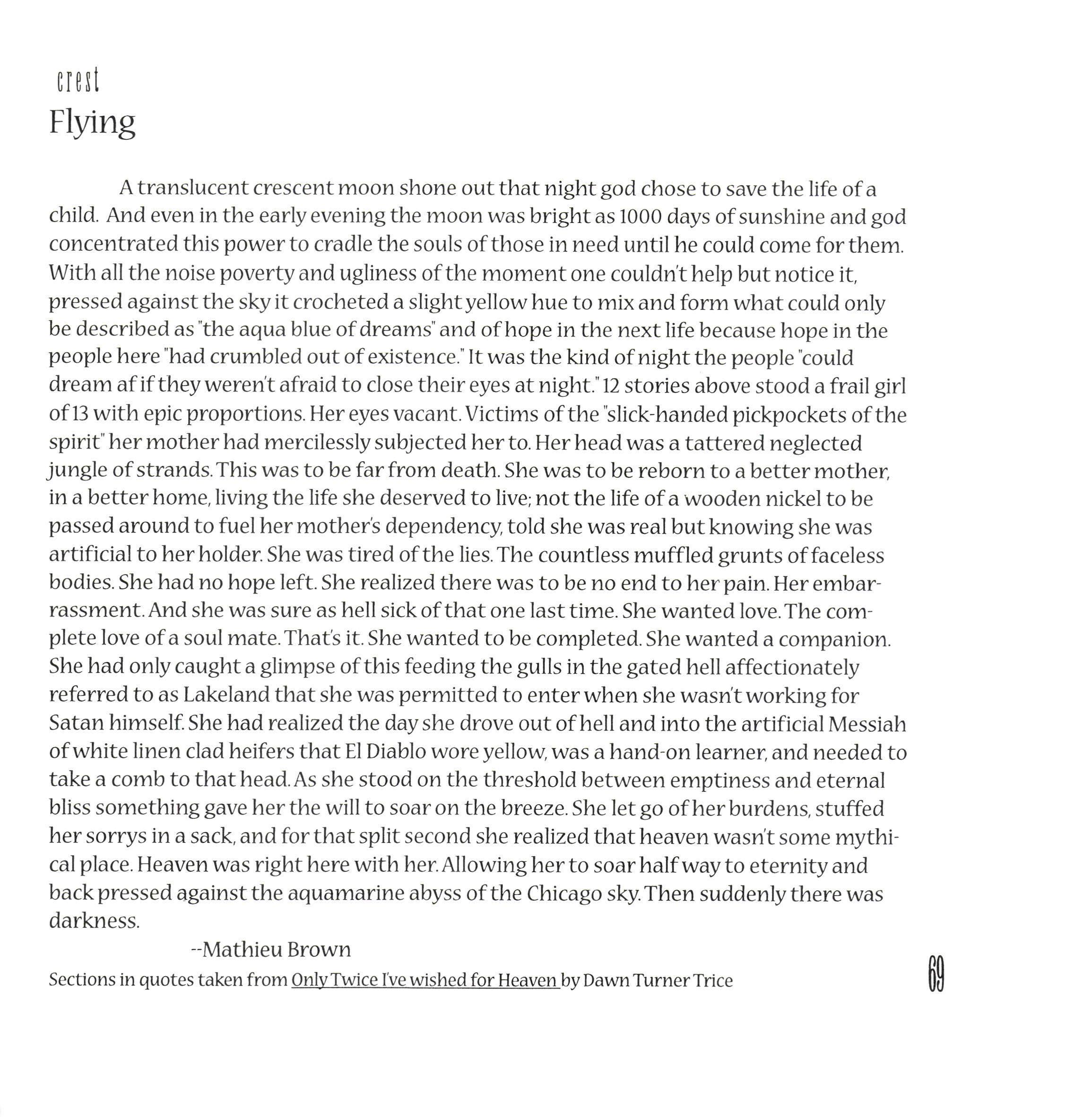 Wet,l lookedabove me At the choices I had made. I\4yface twisted. Mybodyshook. Nothing more to do. So much moreto do.