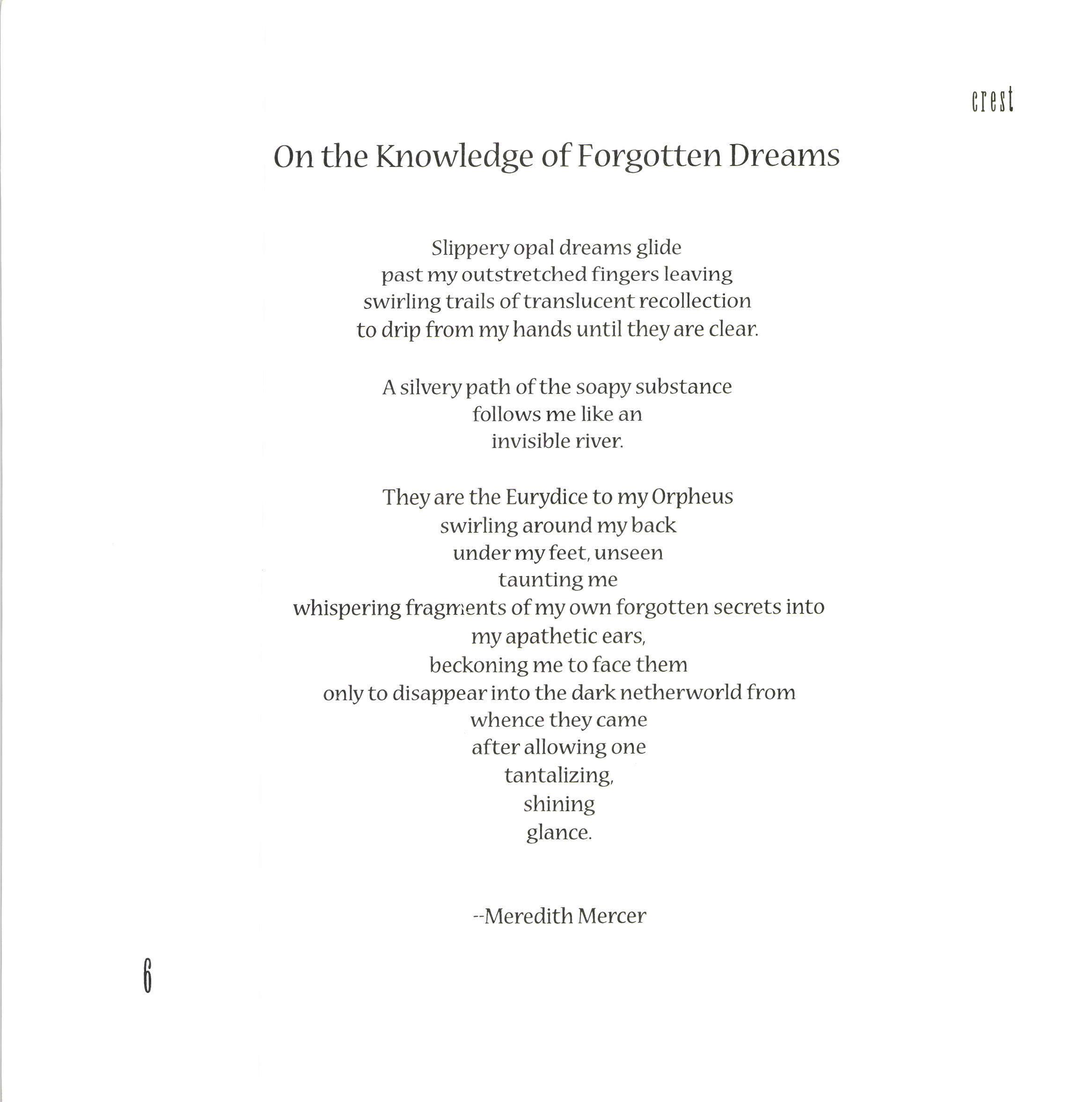 whispering fragrrients of my own forgotten secrets into myapathetic ears, beckoning me to face them only to disappear into the dark netherworld from whence theycame after allowing one tantalizing, shining glance.