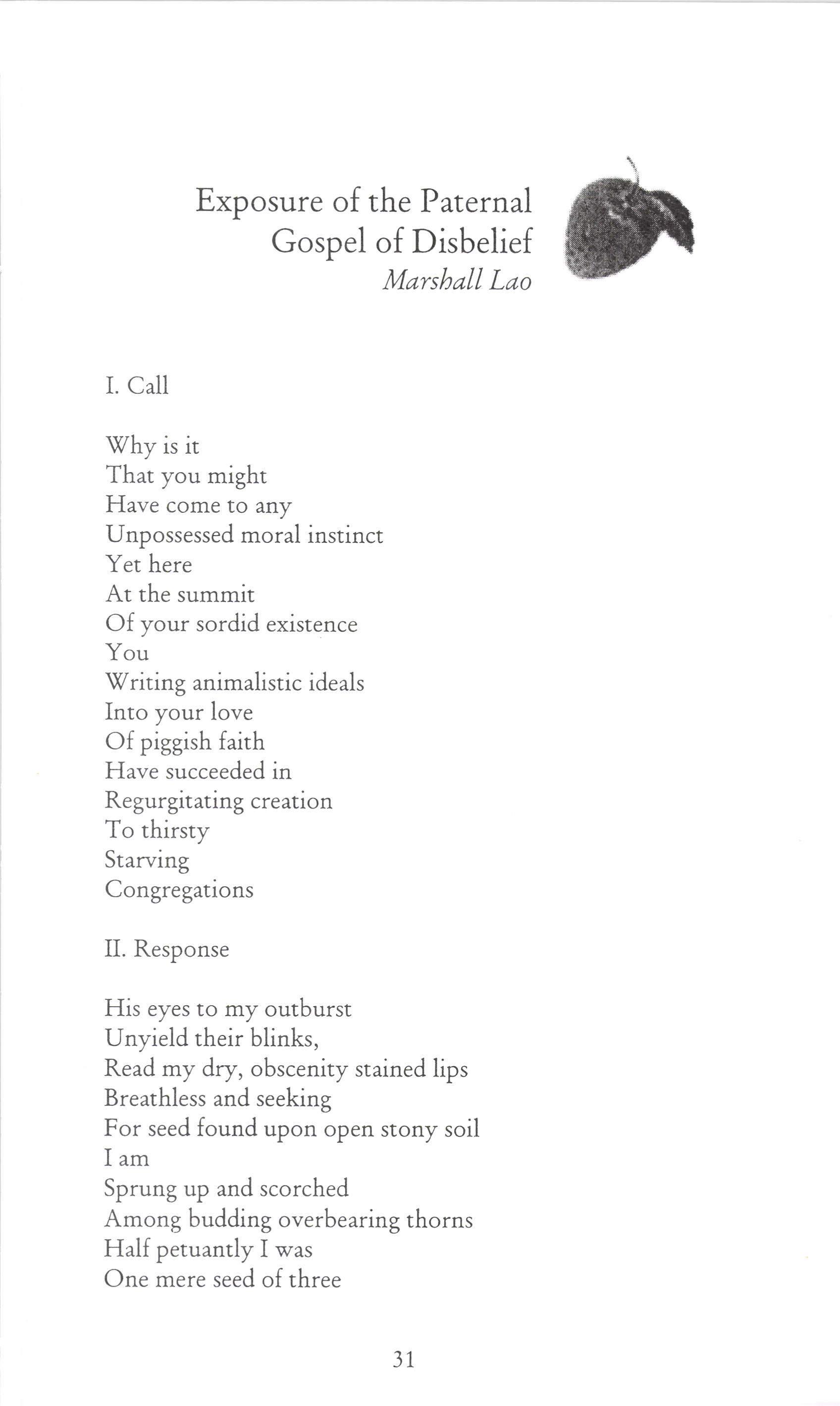 Marshall Lao. Exposure of the Paternal Gospel of Disbelief. 31. Lucy \flilson. Two Men. 33. Karina Benloucif. Vhere Are They Going?. 34.