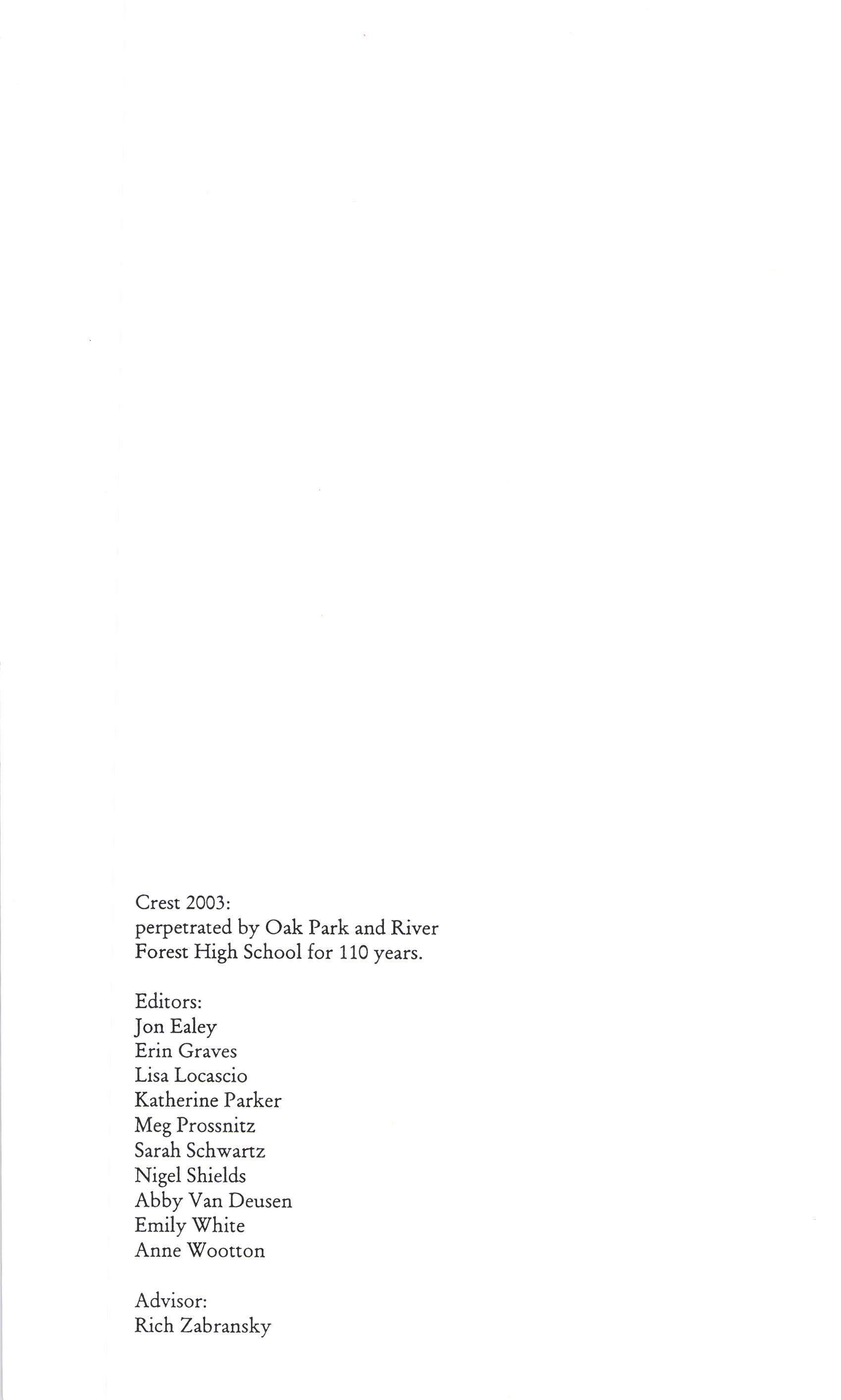 Crest 2003: perpetrated by Oak Park and River Forest High School for 110 years.