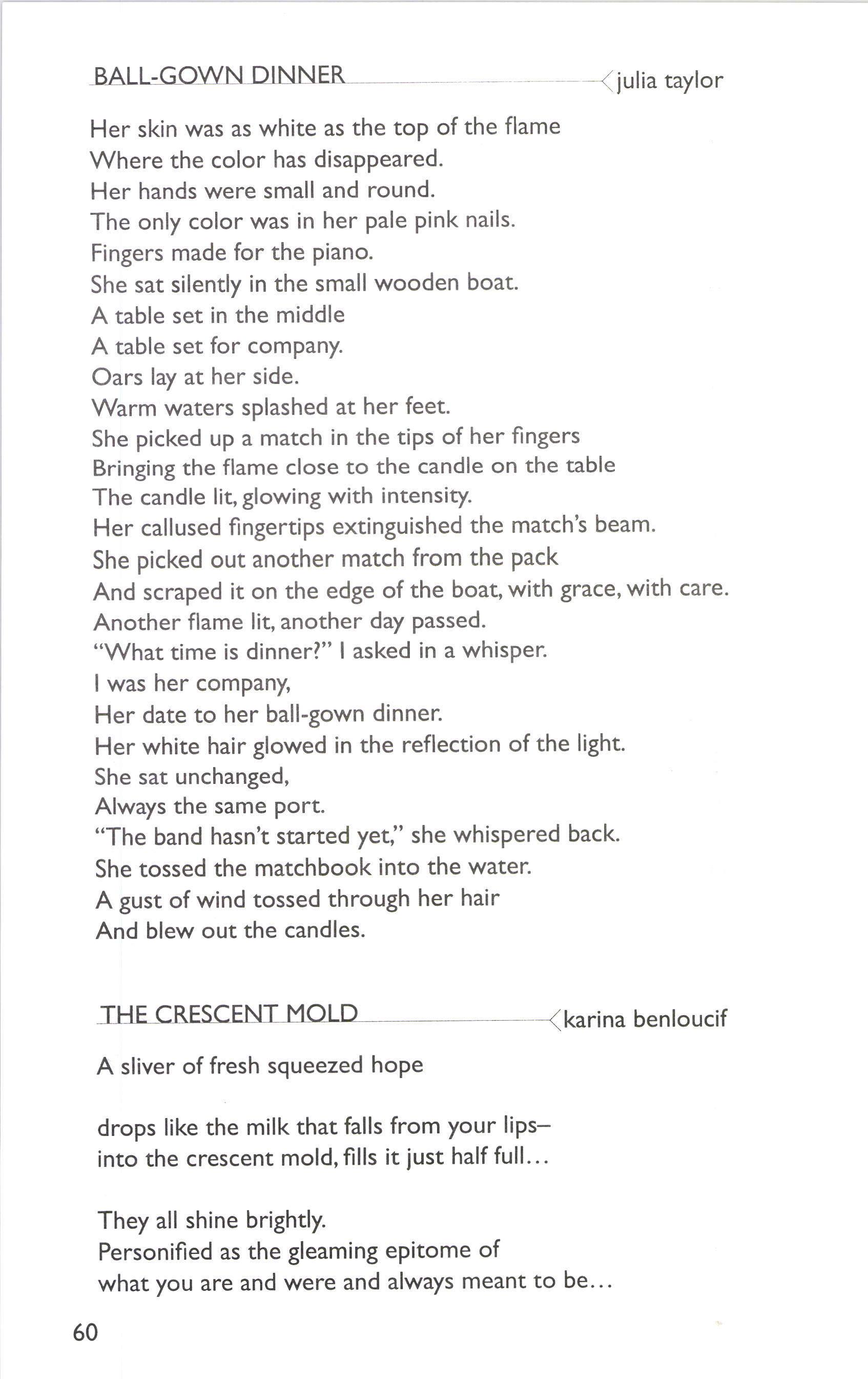 kate gavriel editors rachel johnson lindsay kral christopher nied nadia ranney sarah schwartz abby van deusen emily white anne wootton richard zabransky advisor steve gevinson english division head