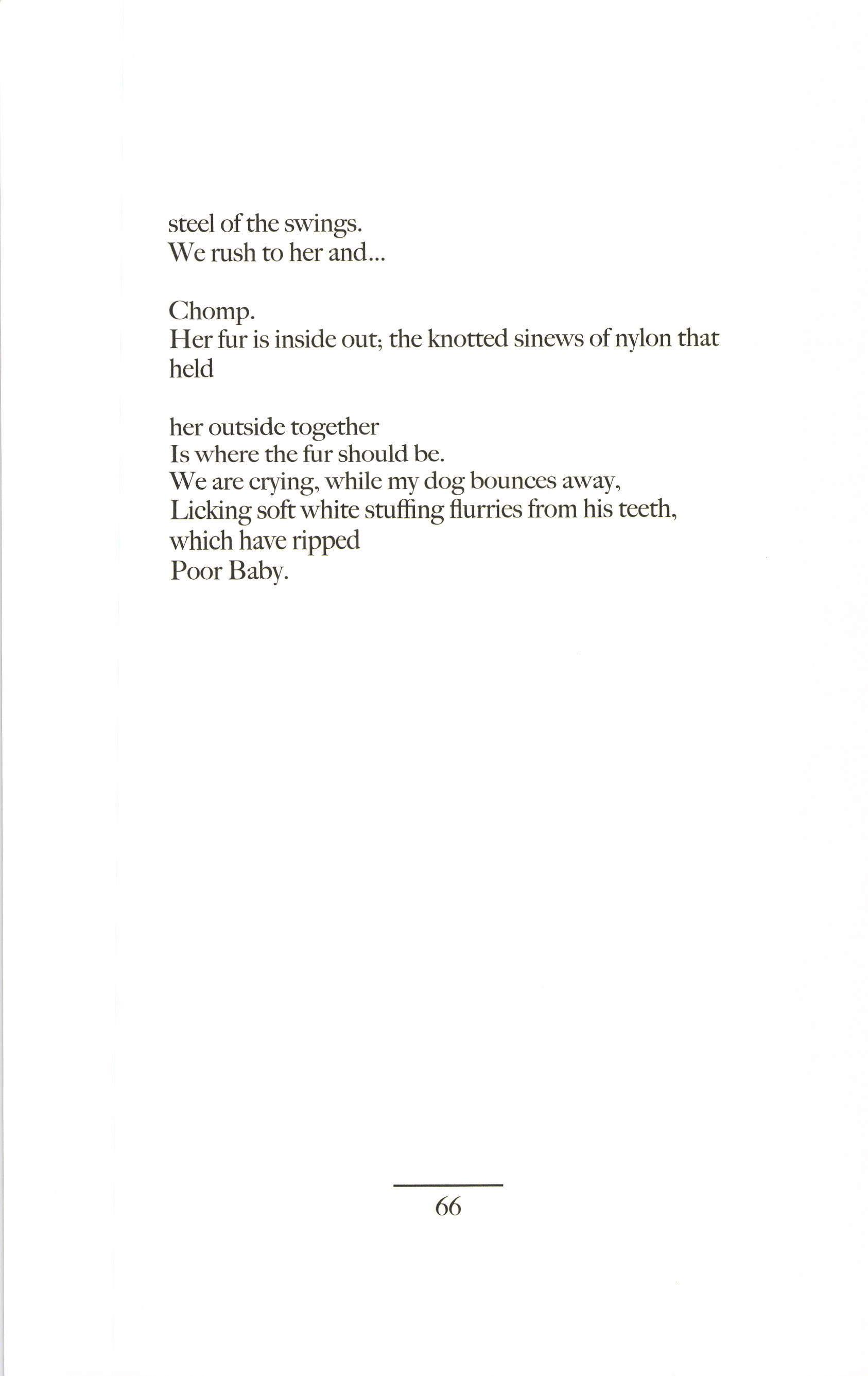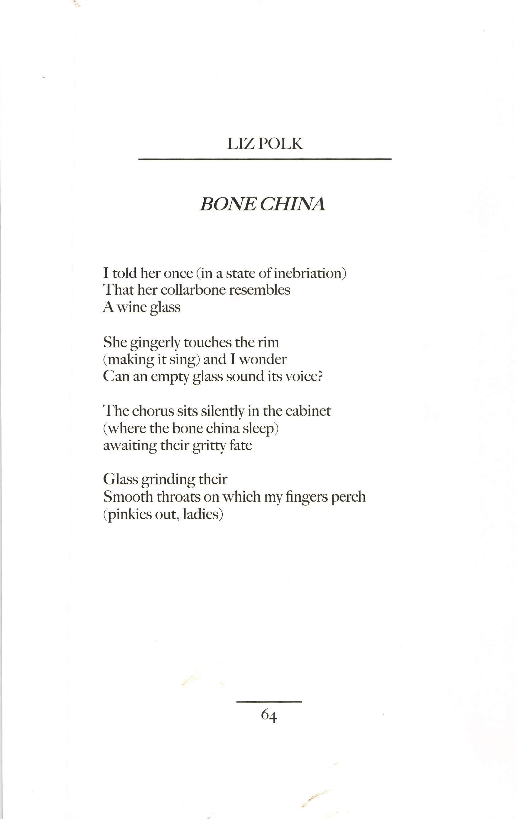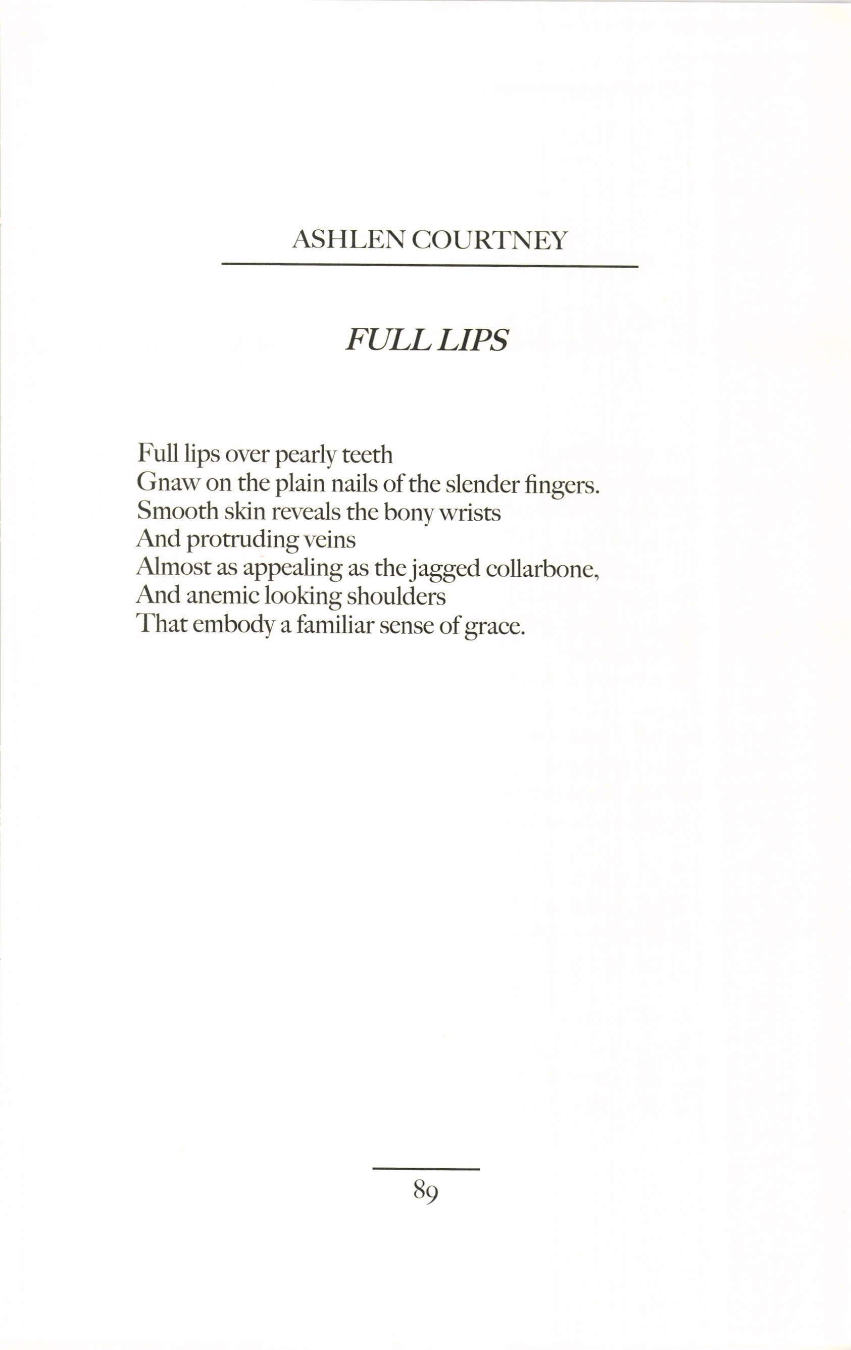 Almostas appealing as thejagged oollarbone, And anemic looking shoulders That embody a familiar sense of grace.