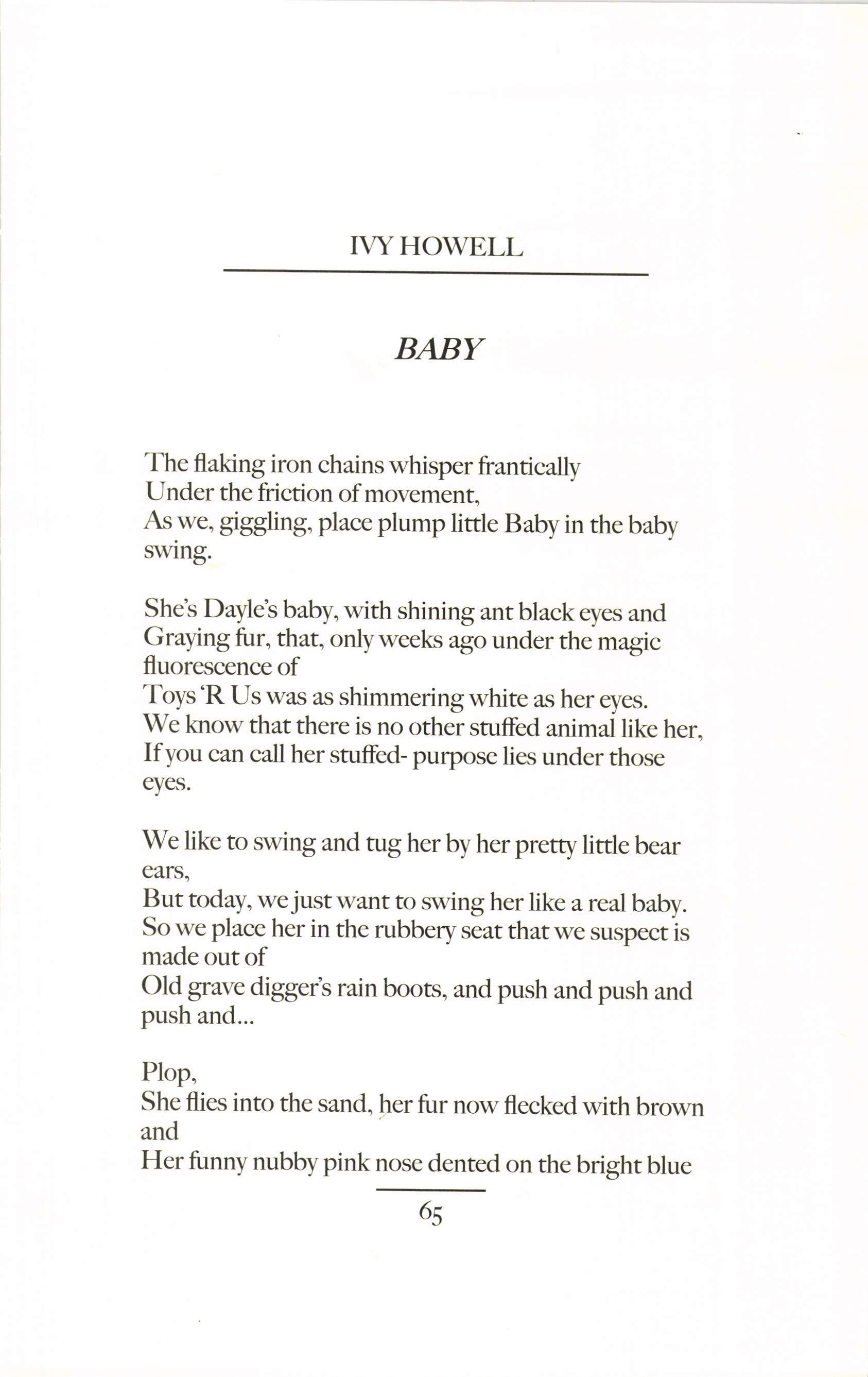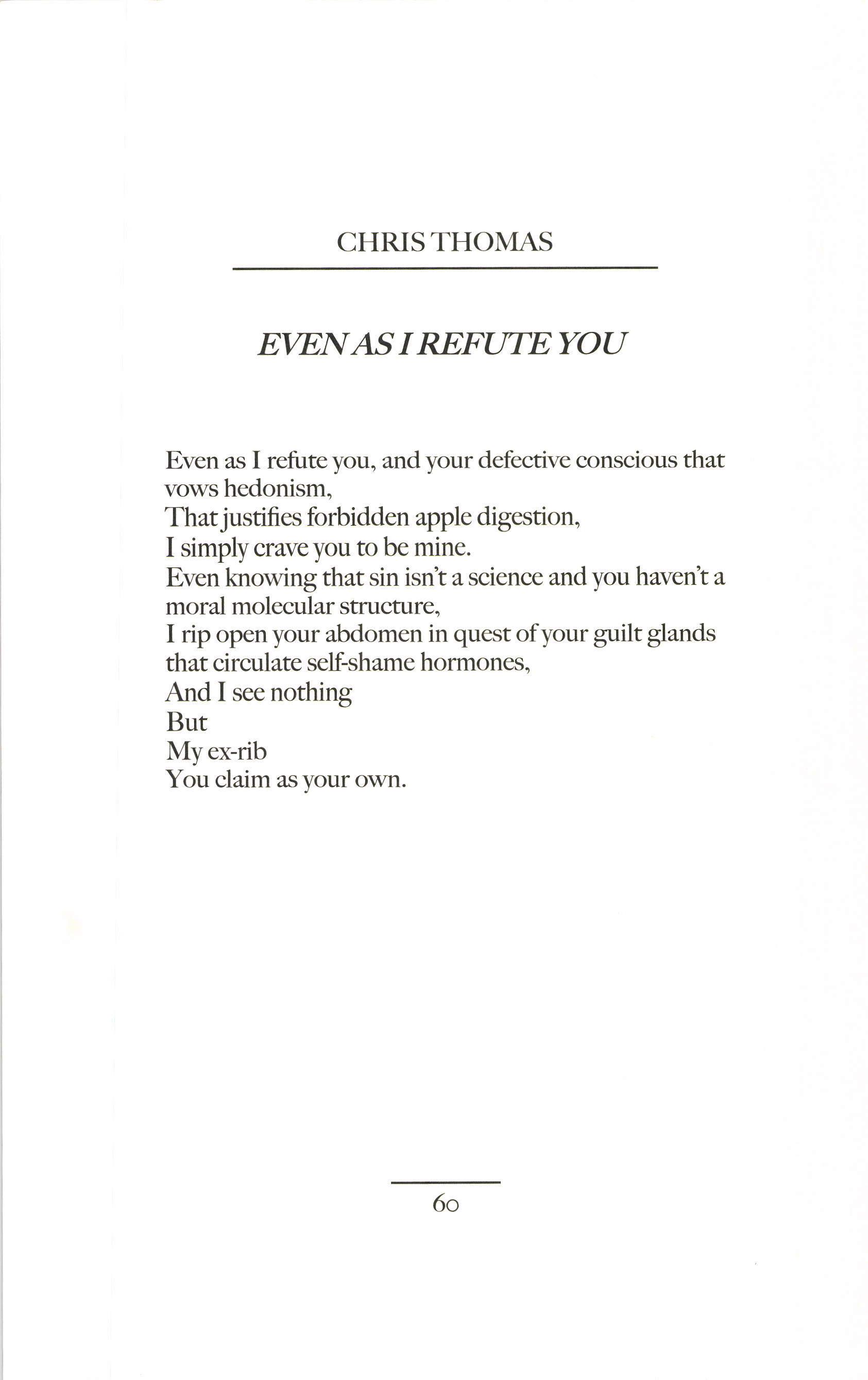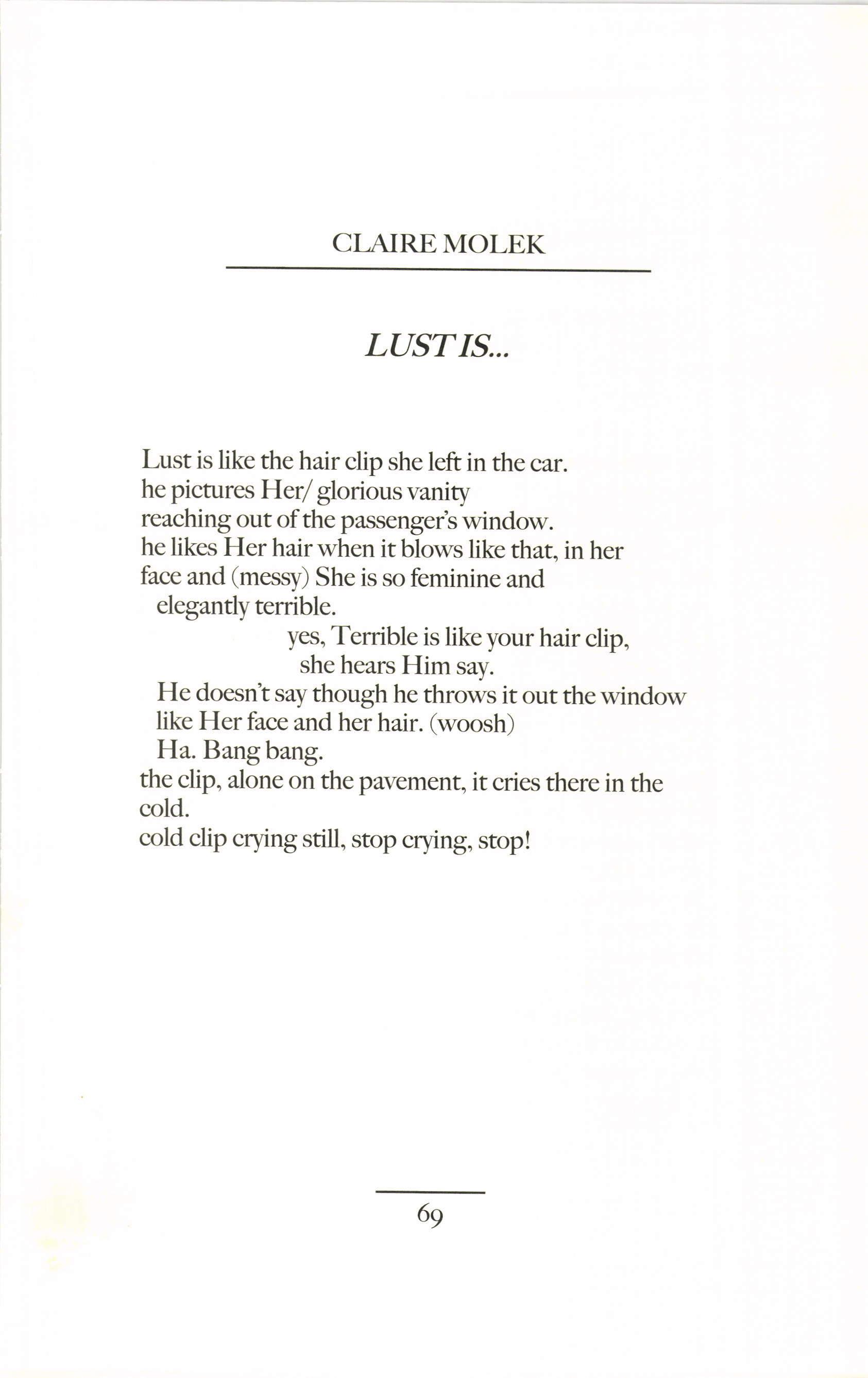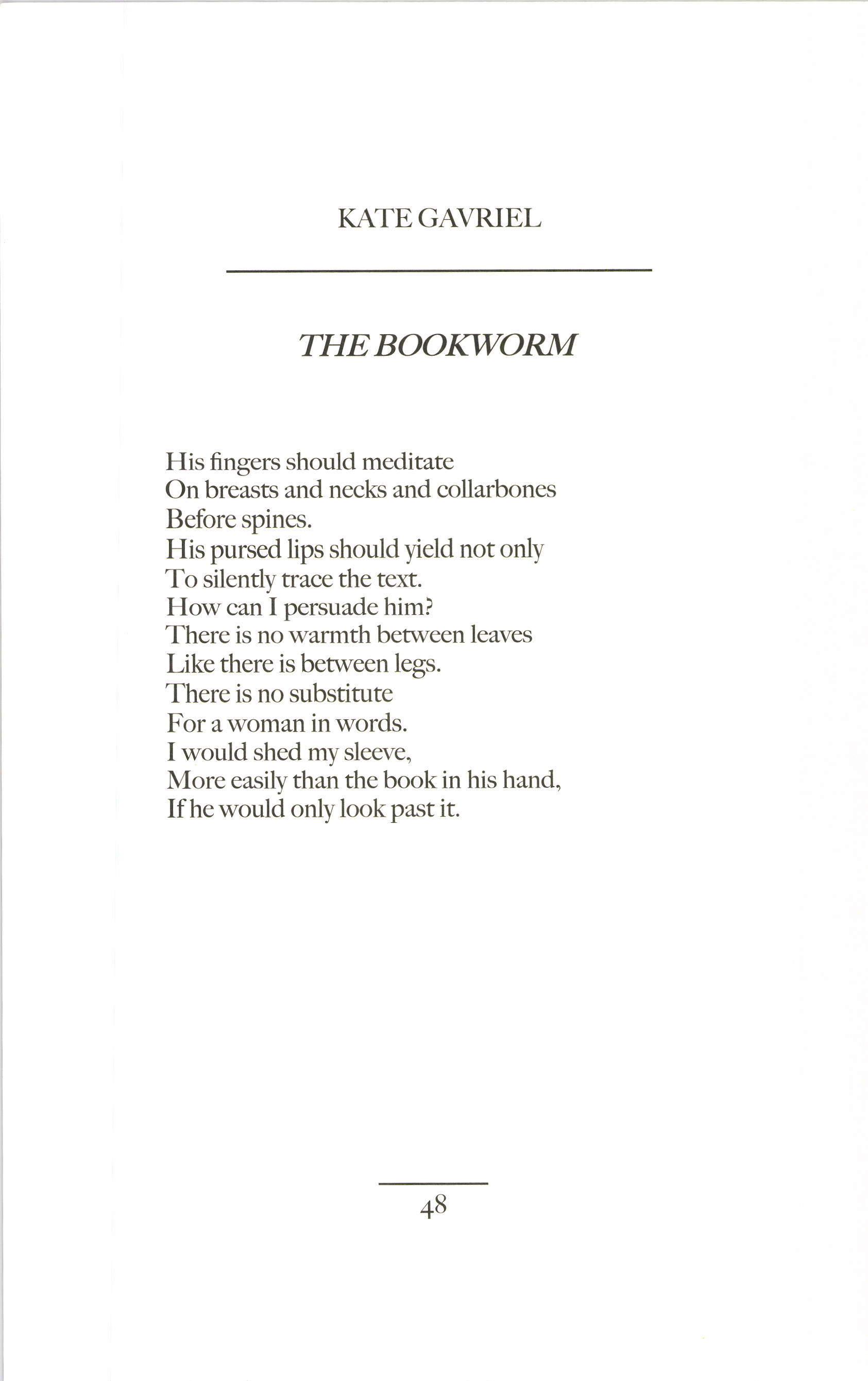 Almostas appealing as thejagged oollarbone, And anemic looking shoulders That embody a familiar sense of grace.