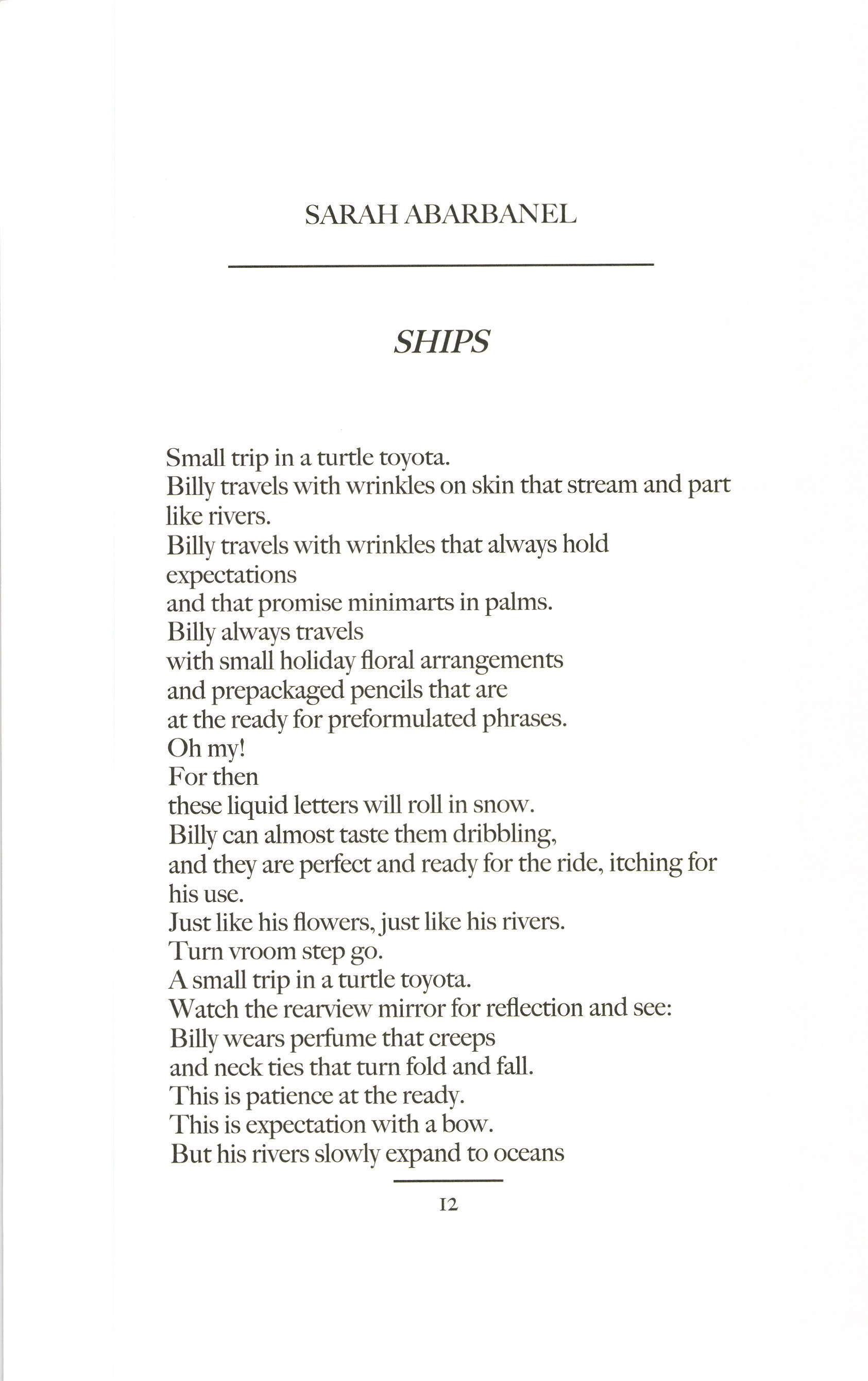 Small trip in a turtle toyota. Billy travels with wrinkles on skin that stream and part like rivers. Billy travels with wrinkles that always hold e4pectations and that promise minimarm in palms. Billy always travels with small holiday floral affangements and prepackaged pencils thatare atthe ready for preformulated phrases. Oh my! For then these liquid letters will roll in sno\M. Billy can almost taste them dribbling" and they are perfect and ready for the ride, itching for his use.
