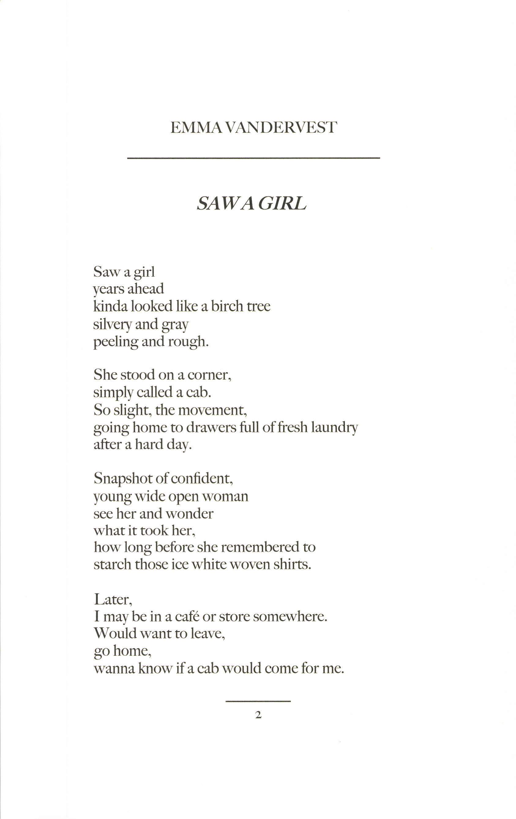 She stood on a corner, simplycalled acab. So slighq the movemenq going home to drawers full offresh laundry after ahard day.