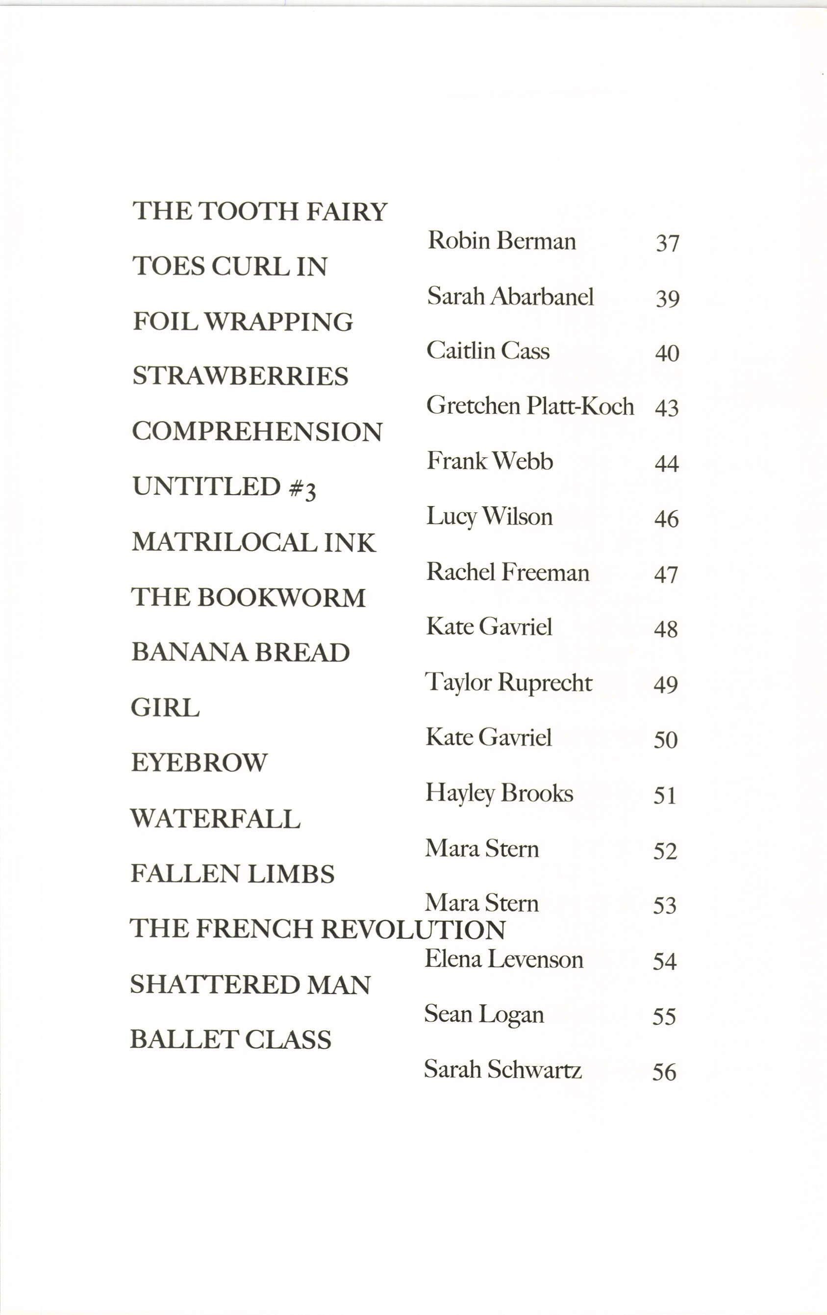 Sarah Abarbanel Elizabeth Polk Catherine Gawiel Lindsay Kral Claire Lombardo Christopher Neid Sarah Schwartz