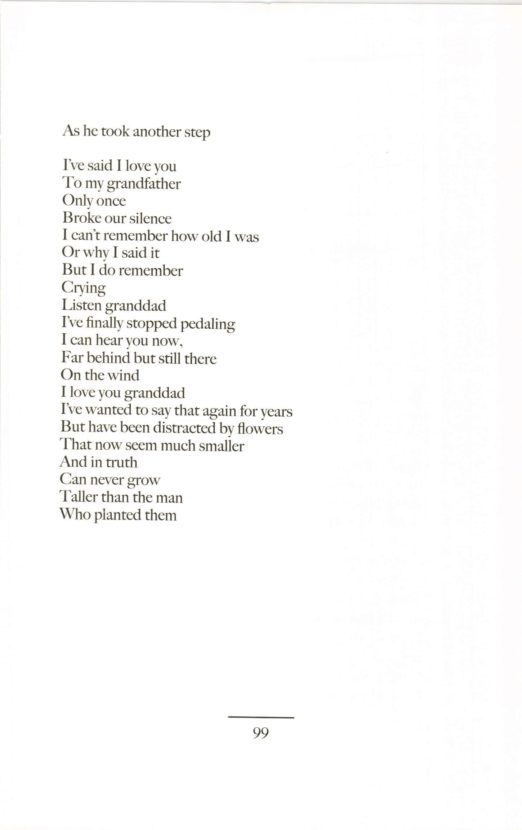 Listen granddad Ite finally stopped @aling I can hearyou now, Far behind butstill there On thewind I loveyou granddad