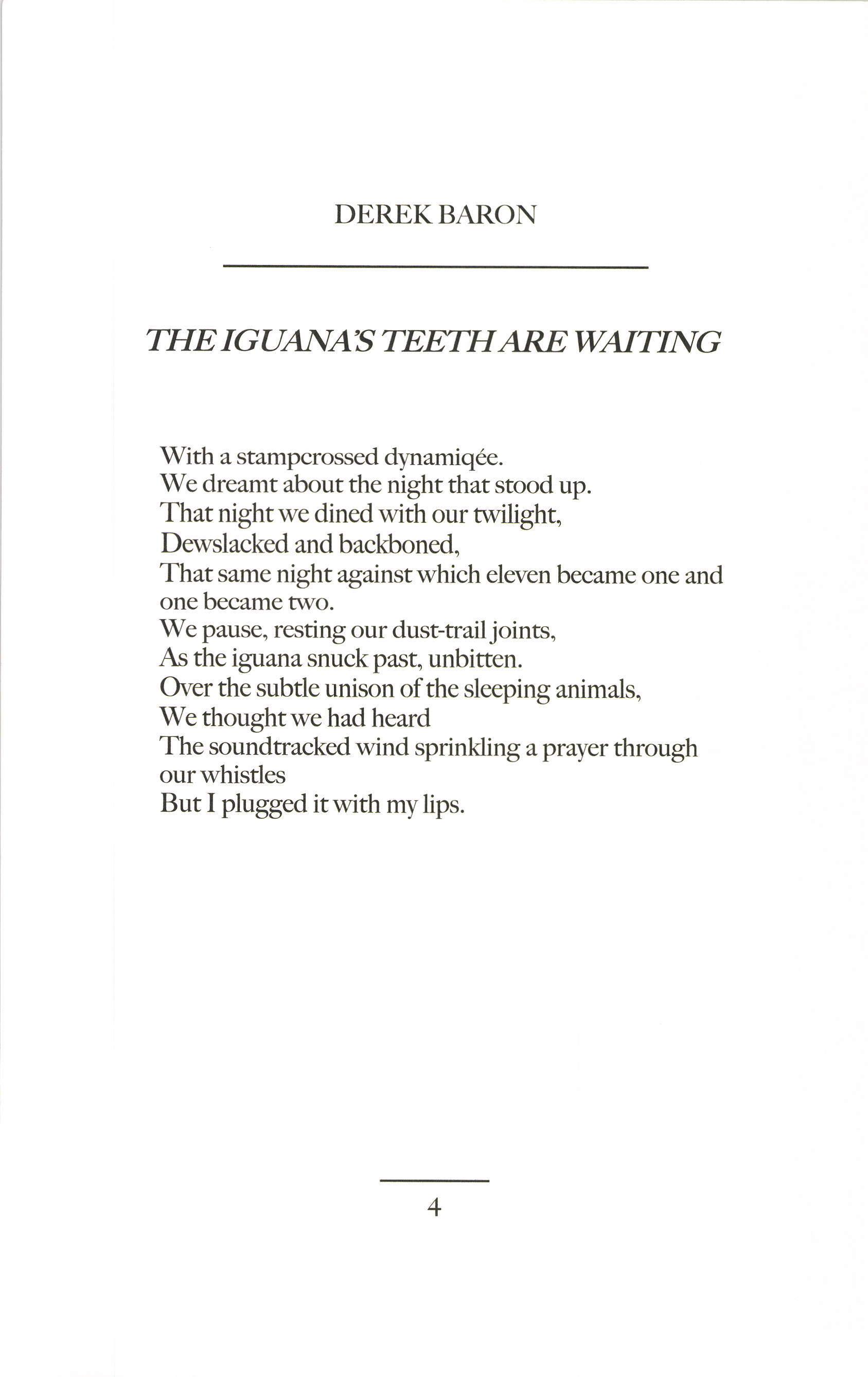 Taylor ColeridgeDerek Baron likes film, literature, and rgth century Russian furniture. "Iguanas" is his first poem.