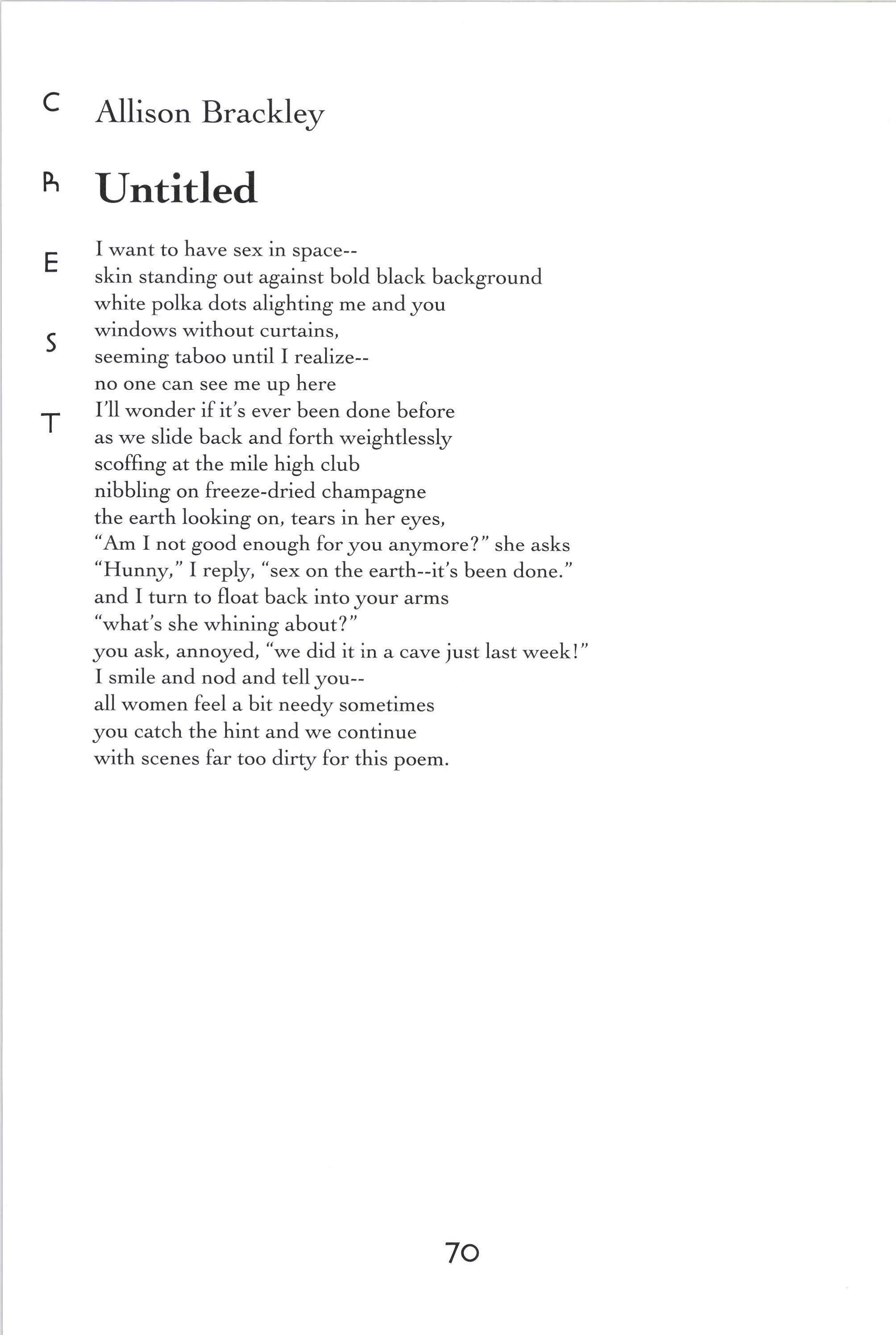 Allison Brackley opposes sex in space.
