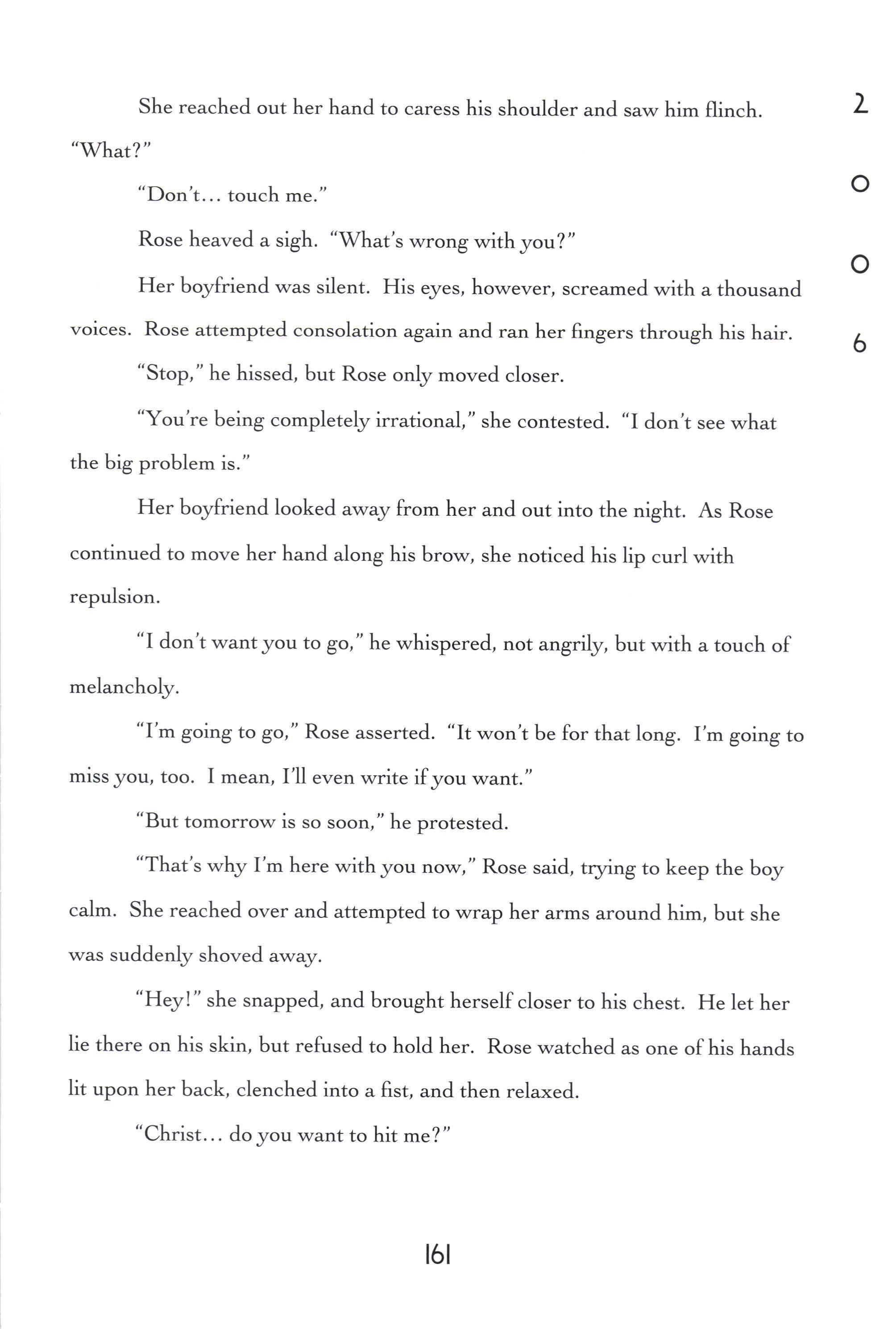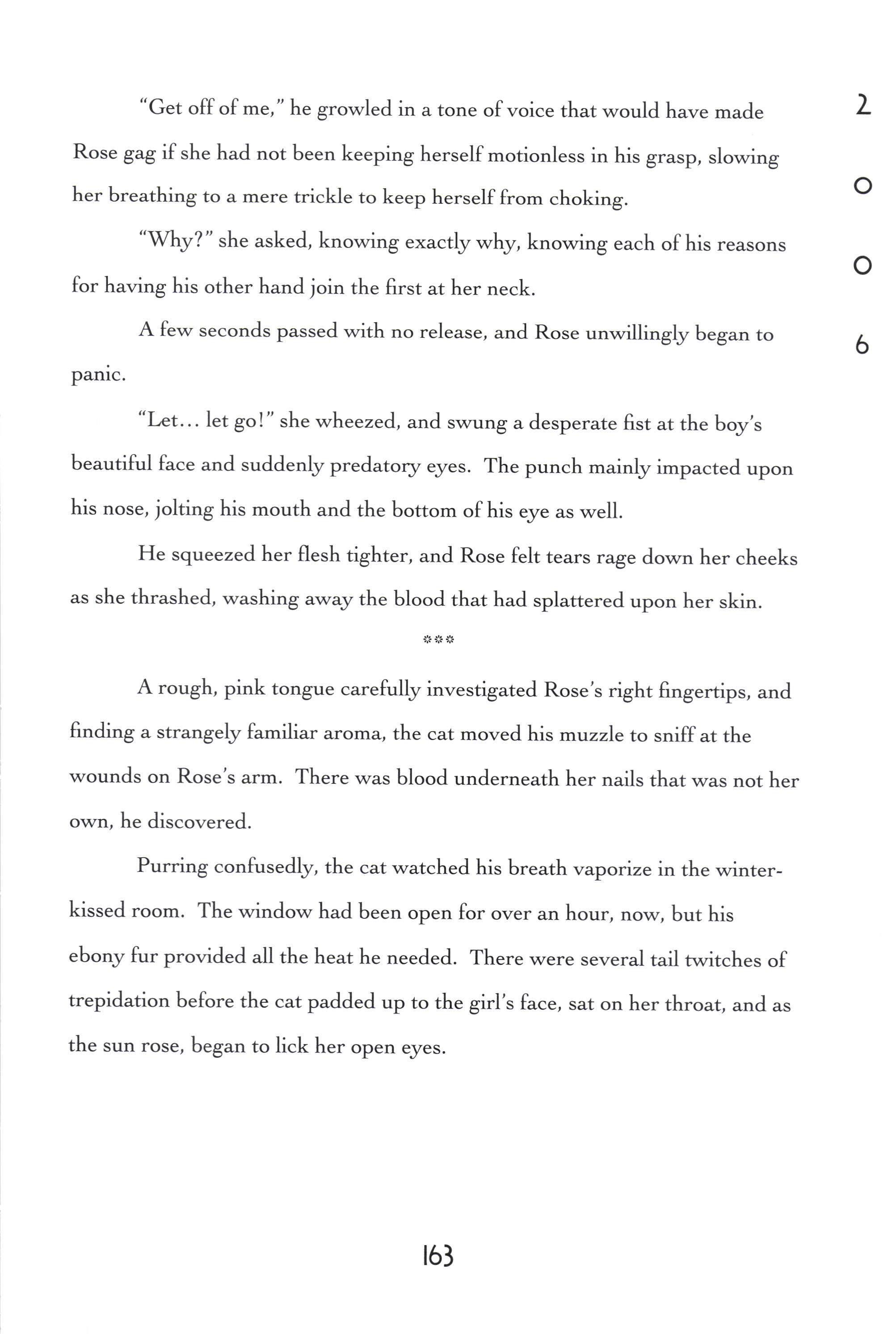 It showed, too, in the chipping paint and the raggedy underlayer. It was so tall that only wooden steps could guide sleepy, narrow feet (with nail polish) to their resting place. Mamma taught me never to be scared at night. "You know, if someone truly wants to hurt you, there's really nothing that Daddy or I can do to stop them. 'We can try, but they can hurt us too." I realized that I was alone. I knew that the world wasn't always safe, but under those mushy covers I did feel safe. I invented ways to escape all suffering. okay, underneath these blankets nothing can hurt me - As long as I'm laying on this