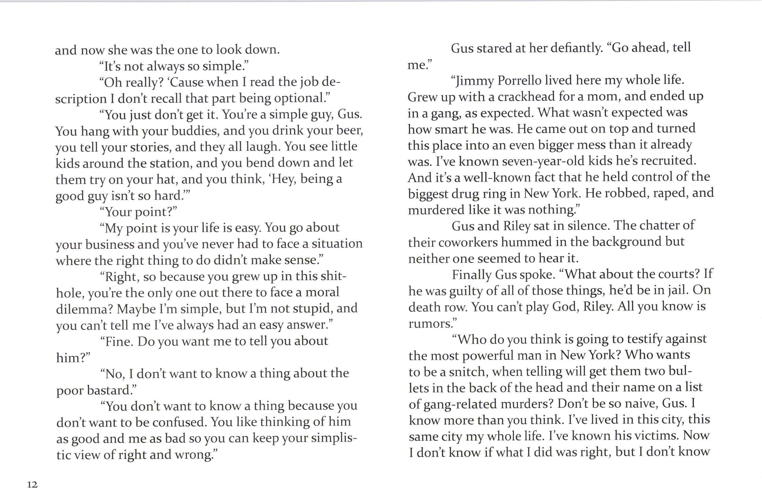 "No, you can't. You can't. And I told myself that I'd be there foryou after rehab-" "Stop guilting me, Tasha. God, I hate itwhen you say stuff like that. The way I live has absolutely nothing to do with you. You turn my well being into some product of your effort. I'm so glad you're trying, Tash; why don't we all just fry and every problem will solve itself. Don't make it your responsibility to make me happy. It's not your job, and you know what, Tasha? If it was, you'd be doing a horrible job." He breathed and looked at her, not really knowing what