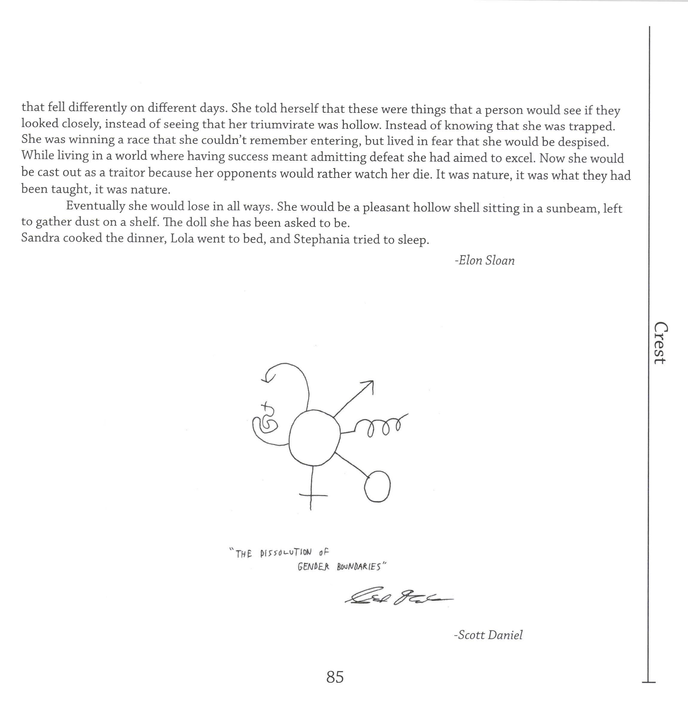 Elon Sloan is the serious side of Crest. Between her vegetarian club meetings and her feminist agendas, she still has time to leave her damn tissues everywhere. Crest is just the beginning of her budding literary career.