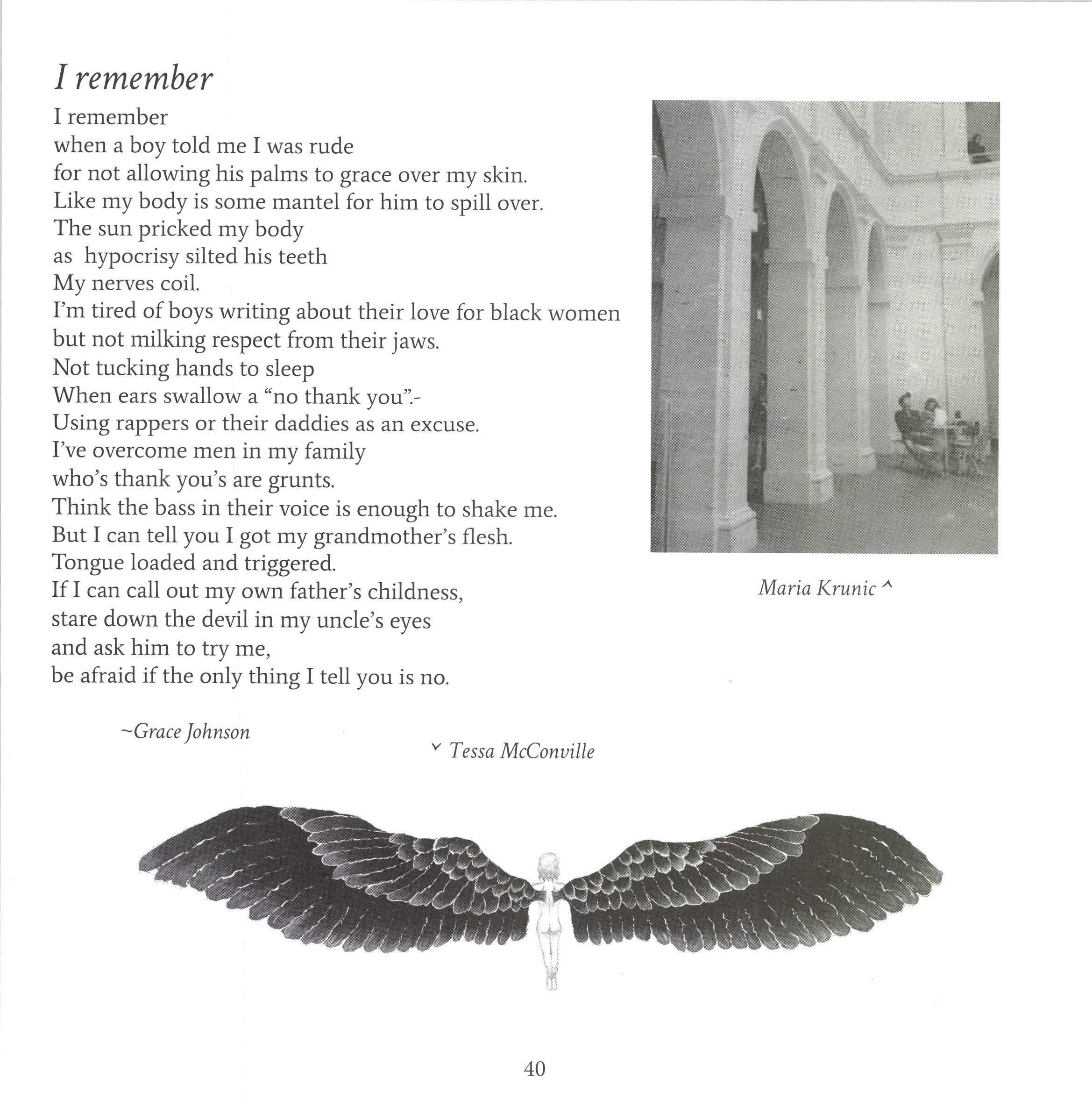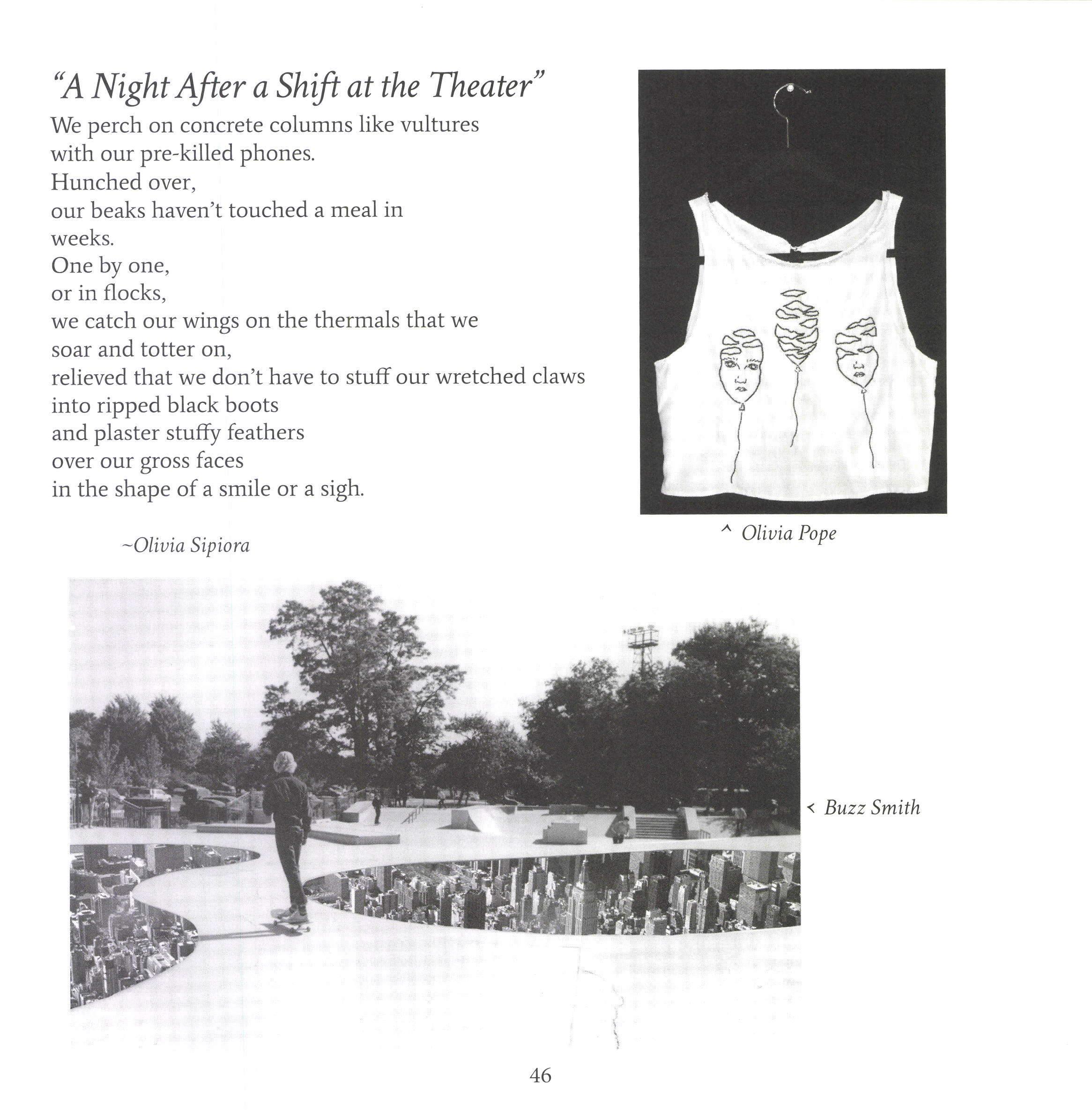SPECIALTHAIff$ TO: Elizabeth Fox, Nancy lvlcGinnis, Helen Gallagher, Regina Topl OPRF tech help desk, Kristian Frumkin and IvIECK Print, Charlie Crain, Tiacy Van Duinen, Lindy Novotny, Ivlichelle Carrow, Valerie White, Vinni lVlatisse, Abby Eck, Orville Redenbacher's Popcorn, Frida Kahlo's ghost, Ernest Hemingway's ghost, and above all our radiant sponsor IvIs. Lauren Lee. Covers by Katherine Sang and Benny Paris. Editor portraits by India Guthrie. Set in Crimson Italic and Average Regular.