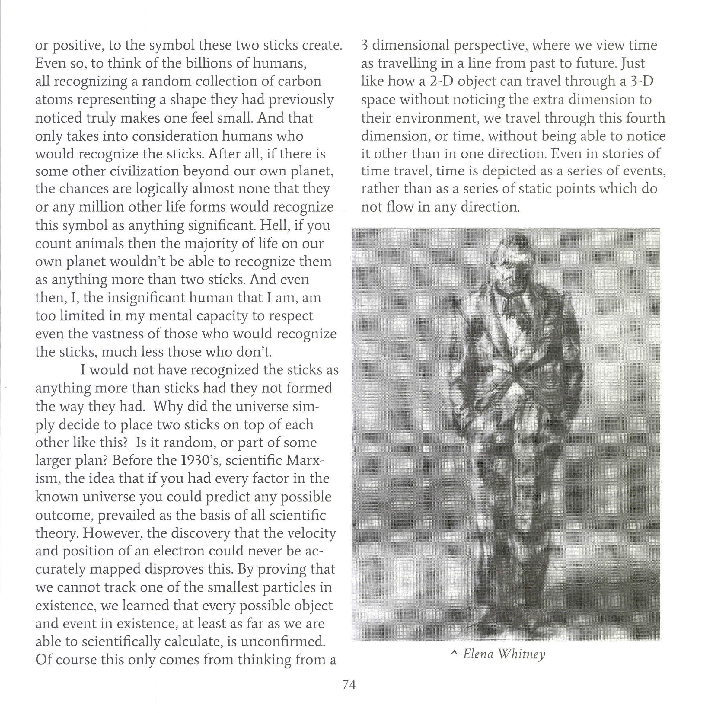 I would not have recognized the sticks as anything more than sticks had they not formed the way they had. Why did the universe simply decide to place two sticks on top of each other like this? Is it random, or part of some larger plan? Before the 1930's, scientific lvlarxism, the idea that if you had every factor in the known universe you could predict any possible outcome, prevailed as the basis of all scientific theory. However, the discovery that the velocity and position of an electron could never be accurately mapped disproves this. By proving that we cannot track one of the smallest particles in existence, we learned that every possible object and event in existence, at least as far as we are able to scientifically calculate, is unconfirmed. Of course this only comes from thinking from a