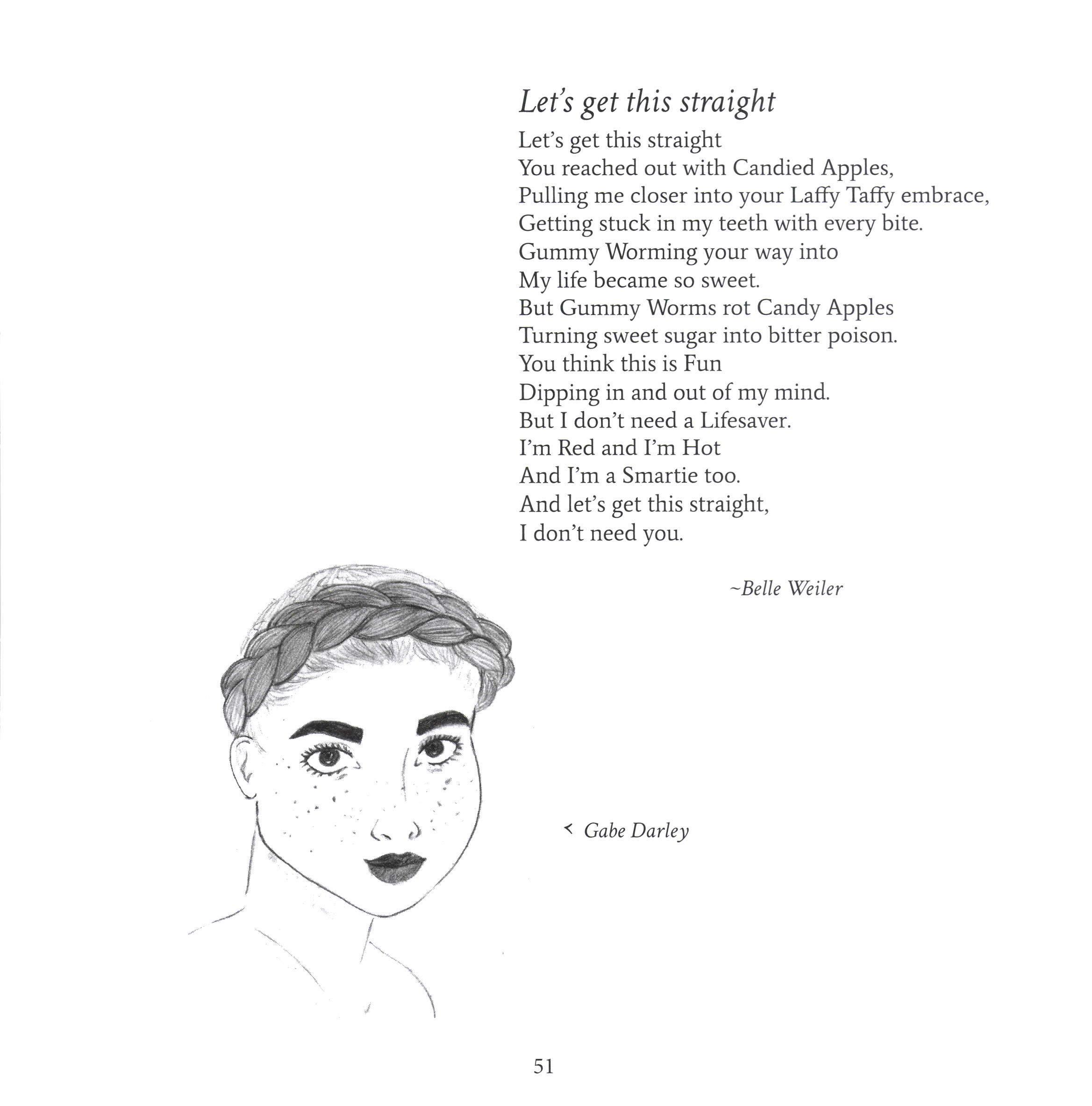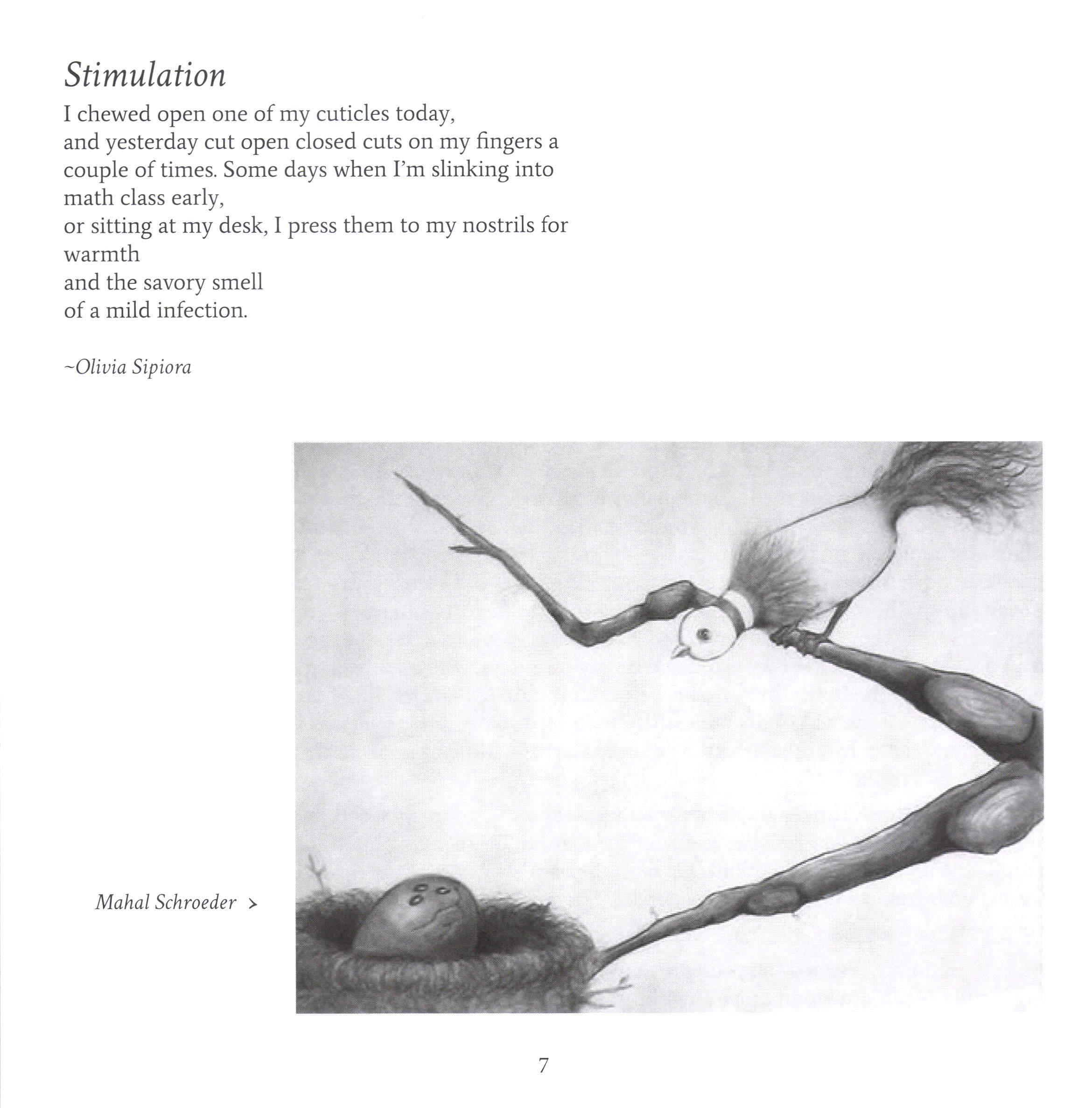Dear readers, Welcome to the Lz4thyear of Crest! Over the past school year our team of eight editors has been working tirelessly on enjoying all of the hundreds of submissions we've received! So many works have challenged what art is -- works that have struck us with awe, poetry that has made us sit back and think, and humorous writing and cartoons that have made us laugh. In hopes of spreading the love, we have limited the number of pieces an individual may get published. We would like to represent the many styles of art so this year you'll see a range of pieces.