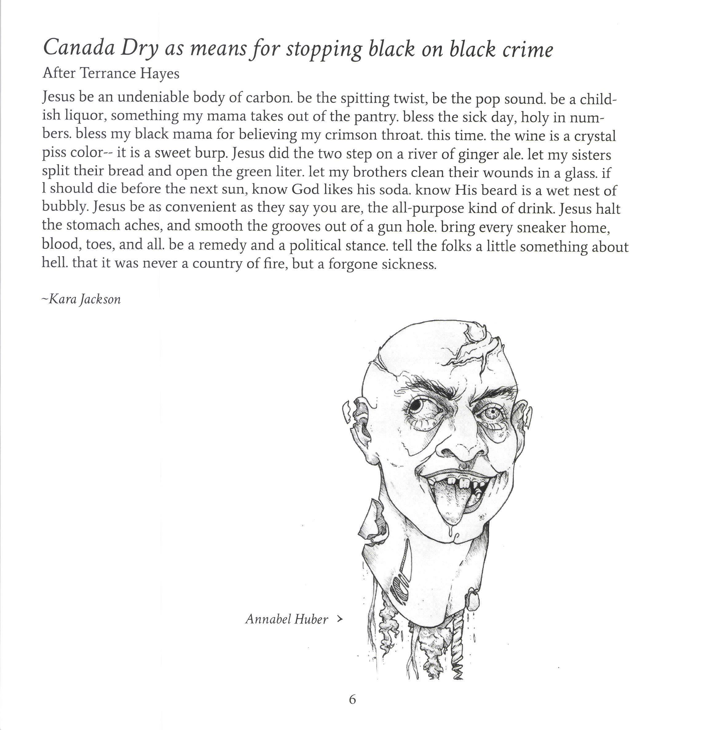 Jesus be an undeniable body of carbon. be the spitting twist, be the pop sound. be a childish liquor, something my mama takes out of the pantry. bless the sick day, holy in numbers. bless my black mama for believing my crimson throat. this time. the wine is a crystal piss color-- it is a sweet burp. Jesus did the two step on a river of ginger ale. let my sisters split their bread and open the green liter. let my brothers clean their wounds in a glass. if l should die before the next sun, know God likes his soda. know His beard is a wet nest of bubbly. Jesus be as convenient as they say you are, the all-purpose kind of drink. Jesus halt the stomach aches, and smooth the grooves out of a gun hole. bring every sneaker home, blood, toes, and all. be a remedy and a political stance. tell the folks a little something about hell. that it was never a country of fire,but a forgone sickness.