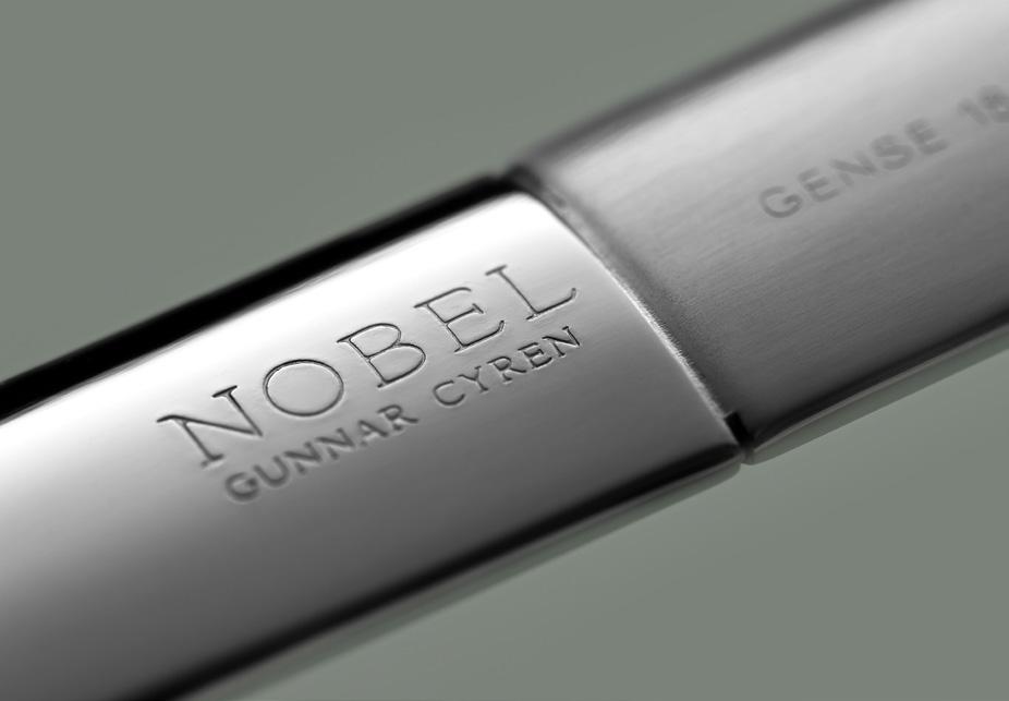 Nobel was created by Gunnar Cyrén to mark the 90th anniversary of the Nobel Prize and has already become a classic. The flatware is inspired by the beginning of the nineteenth century and the silver belonging to the King of Sweden, Karl XIV Johan. A design that is unmistakably Swedish, but with new details that surprise. Nobel adds that little something extra, whether you choose to set your table traditionally with white tablecloths and candelabra, or in a modern and trendy style with new materials and table decorations. Nobel is crafted from stainless steel with a lightly brushed handle and mirrorfinish bowl, blade or tines, and it is still used at the annual Nobel Prize award ceremonies and banquet in Stockholm.