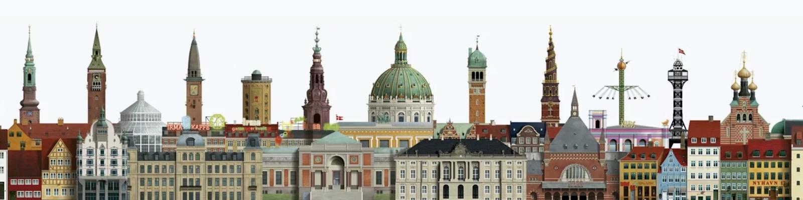 • Iconic illustrations that depict selected faces of each city in panoramic landscape