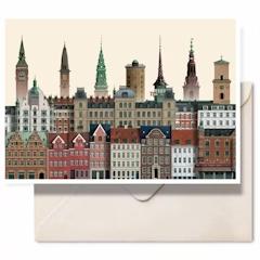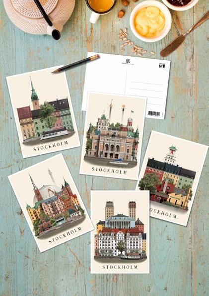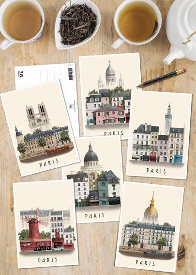 • Illustrated greeting cards depict the many faces of each city with a blank message area inside