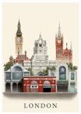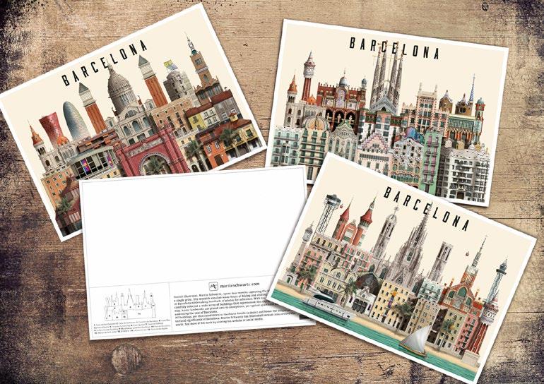 • Illustrated postcards depict the many faces of each city with a complete list of all the building