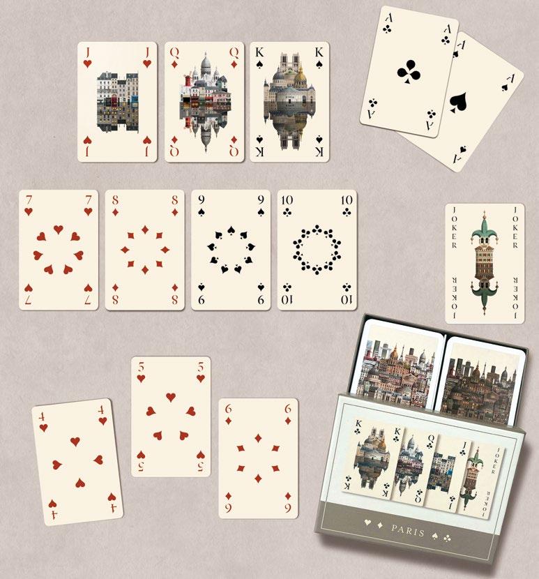 Les valets, les reines et les rois ont été remplacés par des jolies villes dans des versions de jour et de nuit. Même le Joker apparaît dans une nouvelle forme malicieuse.