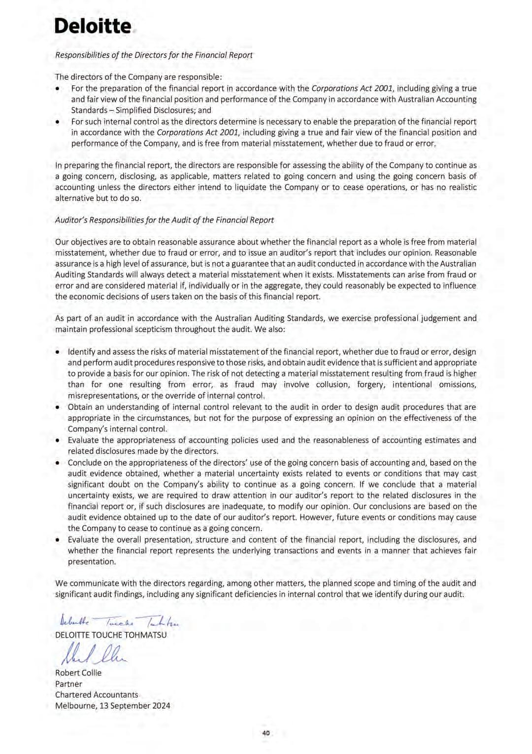 (ii) giving a true and fair view of the entity’s financial position as at 30 June 2024 and of its performance for the financial year ended on that date, and