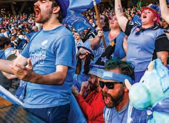 The meeting places in the background symbolises unity and inclusion. Highlighting the culture and community sport creates and the sense of belonging.