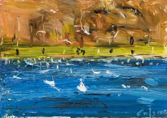 Gulls on the Round Pond Oil on gesso board 12.5 × 18 cm