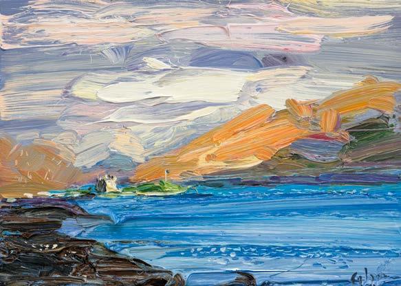 Some en plein air pictures might be completed in a day. Others are laboured over for months in a London studio. But each, in its own way, embodies a landscape. Each captures a sense of atmosphere and mood so that we, as viewers, less merely look at, than find ourselves immersed in, the scenes. Spend a bit of time, and you can all but feel the briskness of the wind, hear the lap of the water, sense the plunge of the slope, taste the salt on the air.