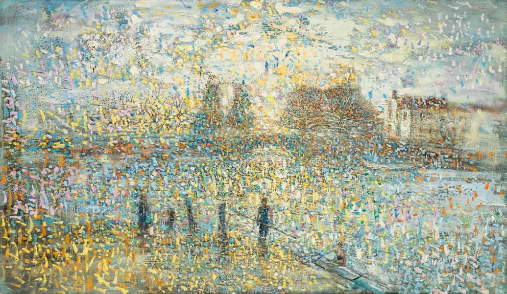 Heathered Hills Oil on canvas 92 × 153 cm back cover Rowers on the Thames