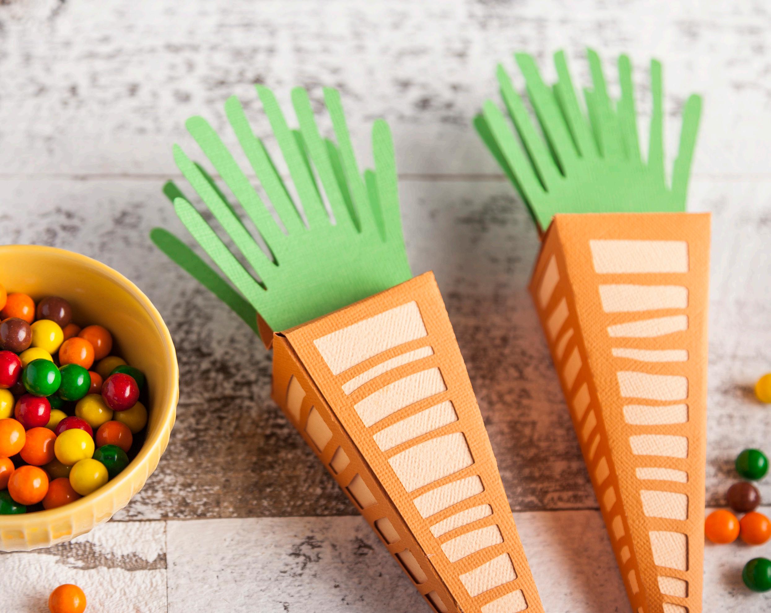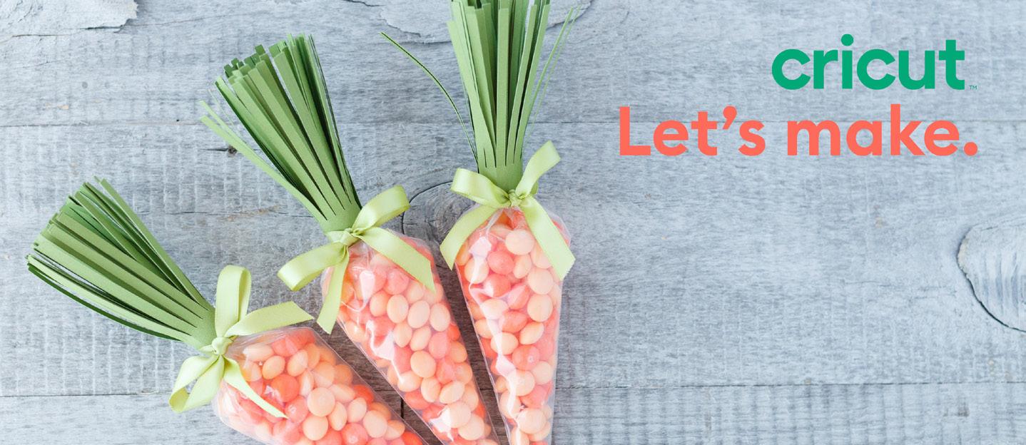 Set yourself apart from the rest with these custom made candy carrots for Easter. Filled with Candy these are perfect for the kids, unexpected visitors, neighbours and friends alike. Made easy with Cricut.