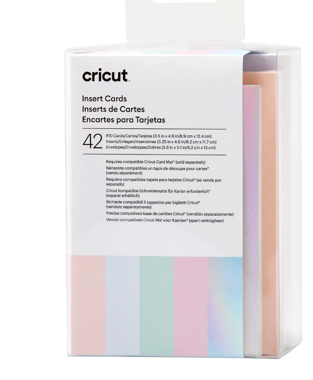 Quick, personalized greeting cards with big impact are at your fingertips with Insert Cards for your Cricut Joy cutting machine. The ingenious glue-free design allows for two-tone, depth-filled cards without mess or hassle. Cut intricate and meaningful words and images into the face of the card to let the beautiful insert color show through. These A2-size cards include white envelopes and come in a bounty of colors to please every card recipient on your list! For use with Cricut Joy. Requires Cricut Joy Card Mat (sold separately).