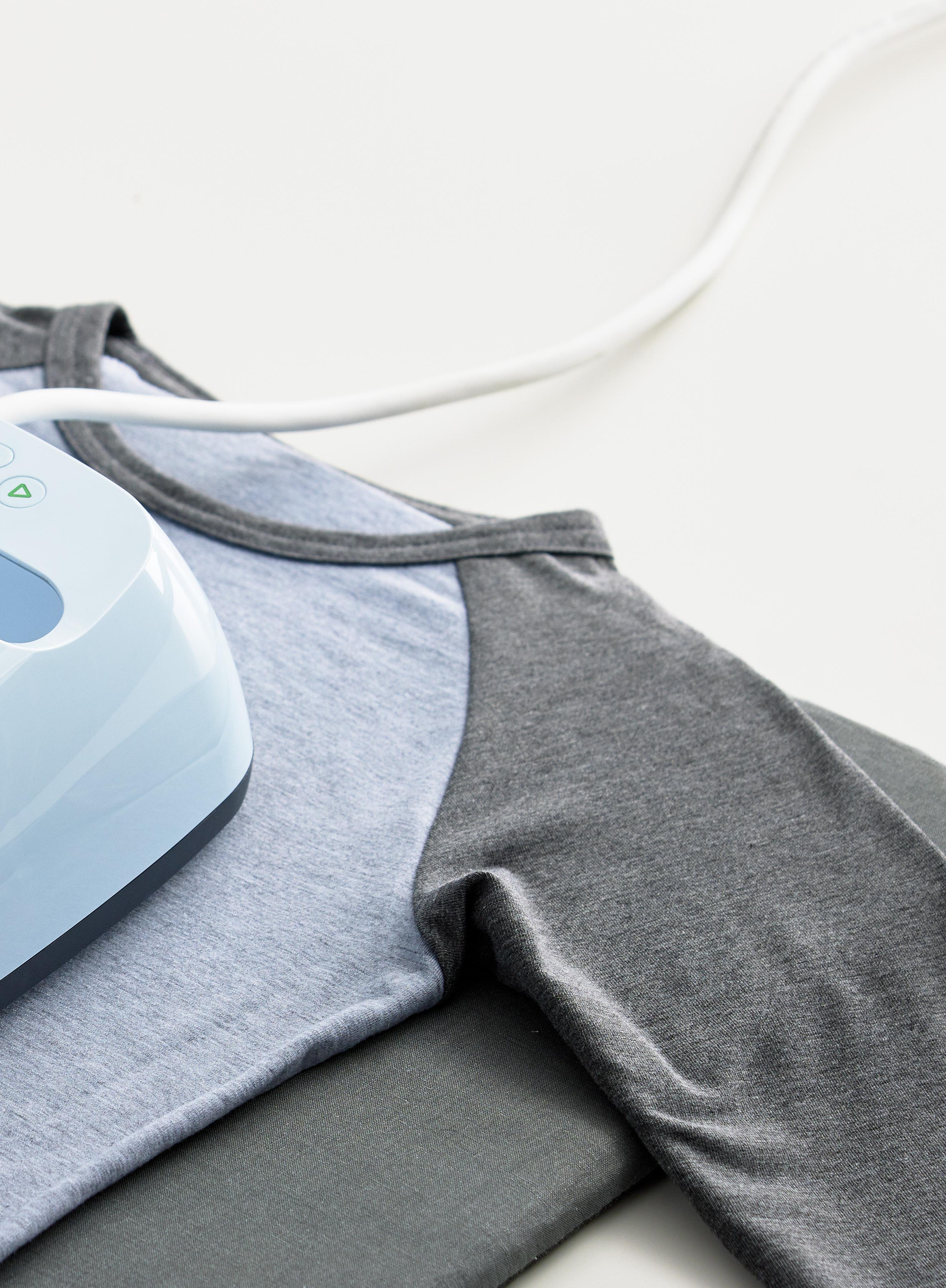 Use a sheet of butcher paper or a teflon sheet when layering iron-on.