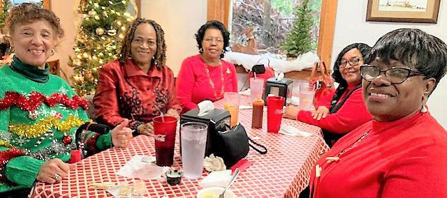 The event was at Brooksie’s Barn with playing Christmas Bingo, Name that phrase or word (all related to Christmas) and exchanging Dirty Santa Gifts. Pictured top are: Alyce Petty, Georgia Miller, Patricia Taylor, Minnie Springfield, Delois Dailey (not pictured - Rose Anderson)