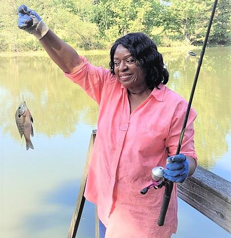 PHOTO IS MIRANDA AND A FINE BLUE GILL.
